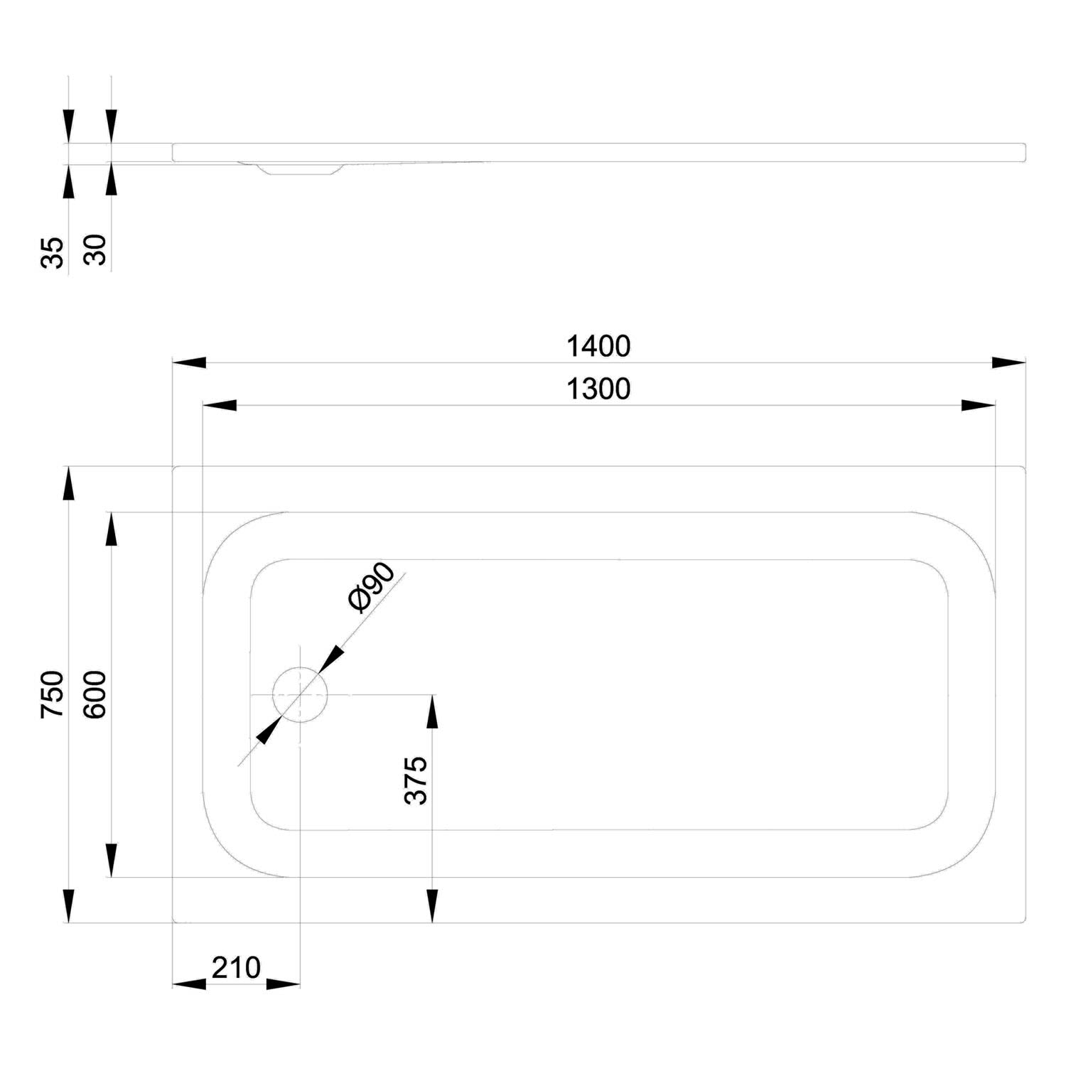 Bette Ultra Duschwanne superflach 140 x 75 x 3,5 cm mit BetteGlasur® Plus