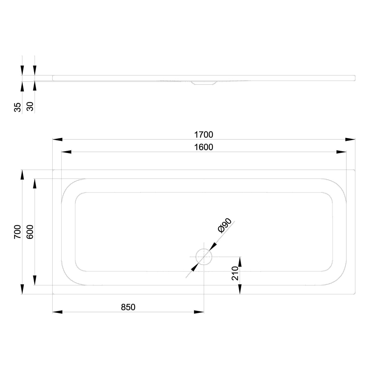 - Ablaufloch Ø 9 cm