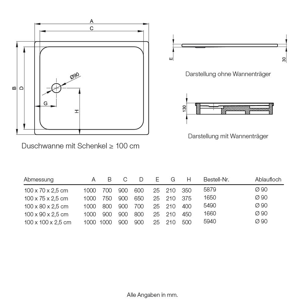 - Ablaufloch Ø 9 cm