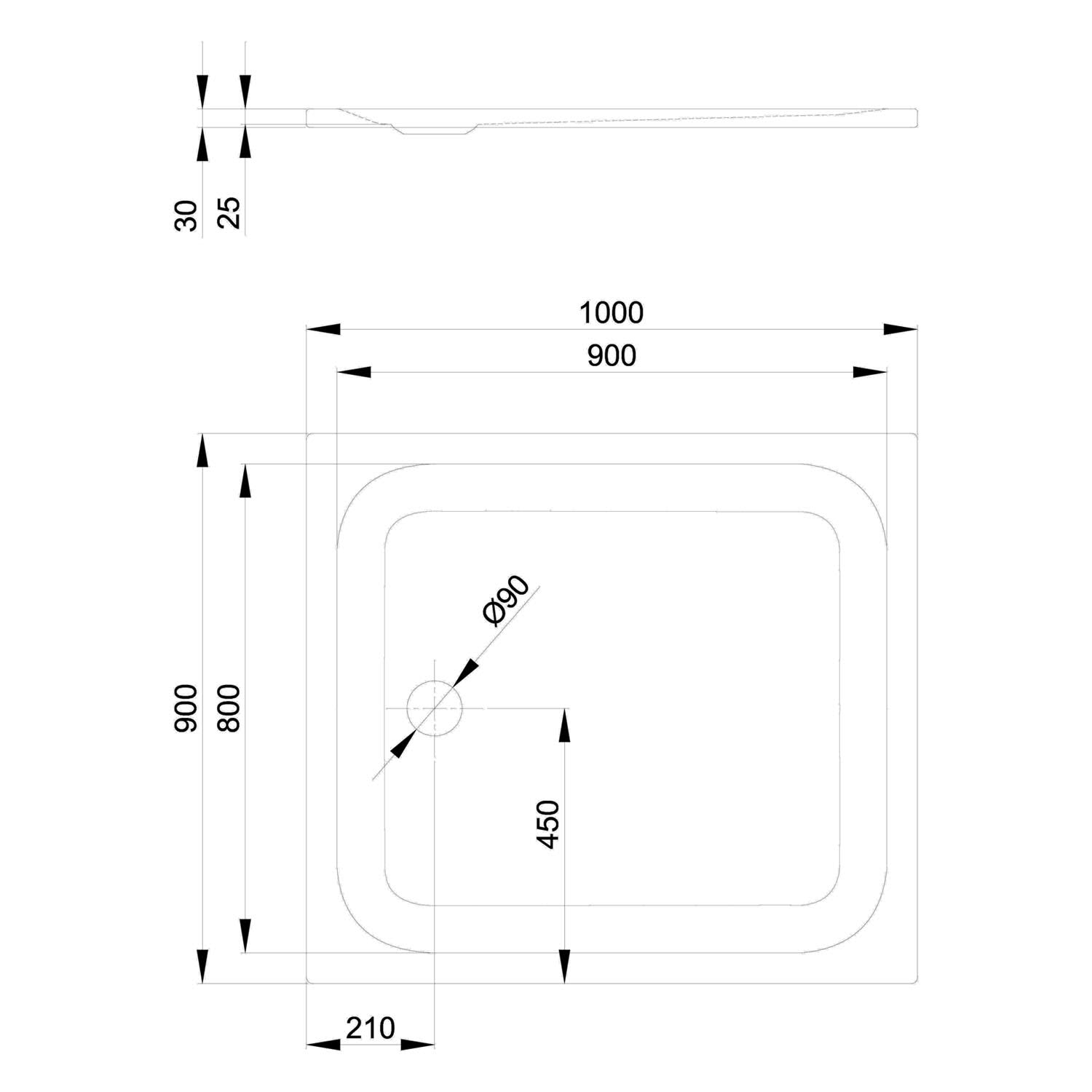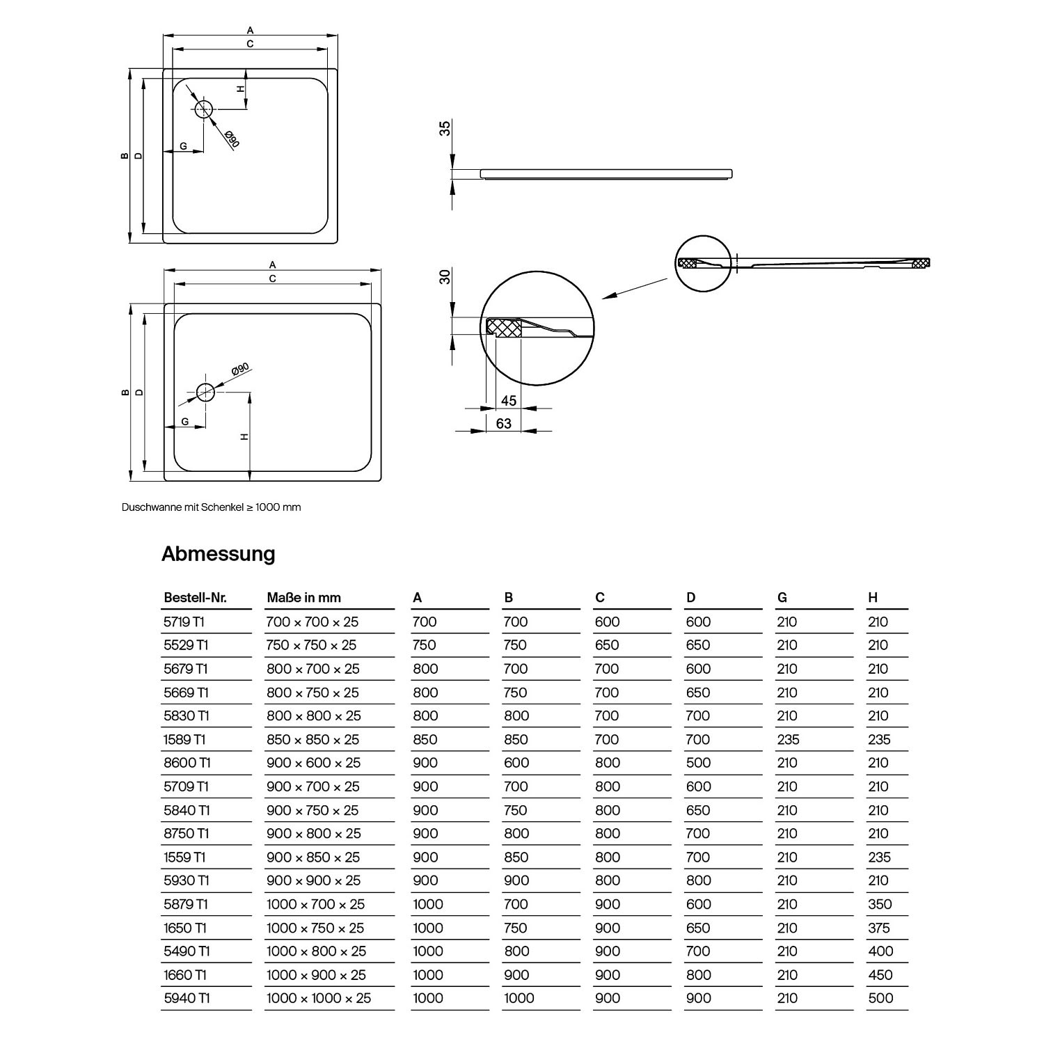 Bette Ultra Duschwanne superflach 100 x 90 x 2,5 cm mit Minimum-Wannenträger