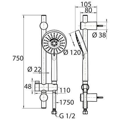H: 75 Ø Duschkopf: 12 cm