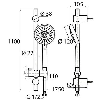 H: 110 Ø Duschkopf: 12 cm