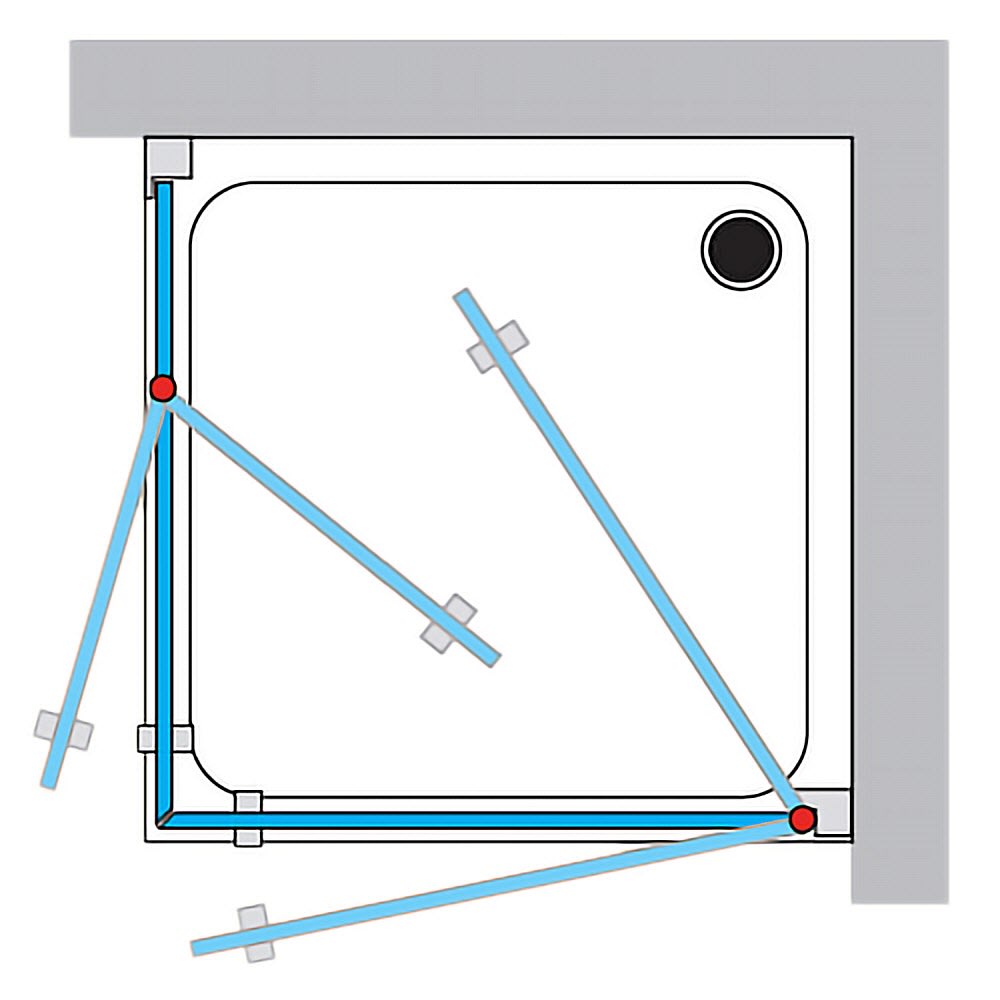 Breuer ELANA 6 Drehdiagonaleinstieg 3-teilig DDE2 u. DDE4 90 x 90 x 200 cm, Festelement links mit CER+ Beschichtung