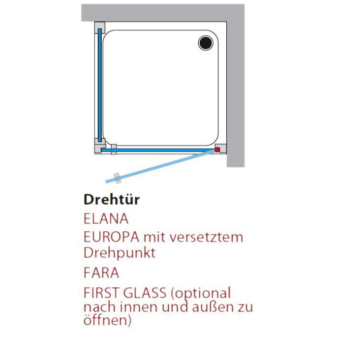 Hinweis: Drehtür mit 2 Seitenwänden ist aus Stabilitätsgründen nicht möglich!