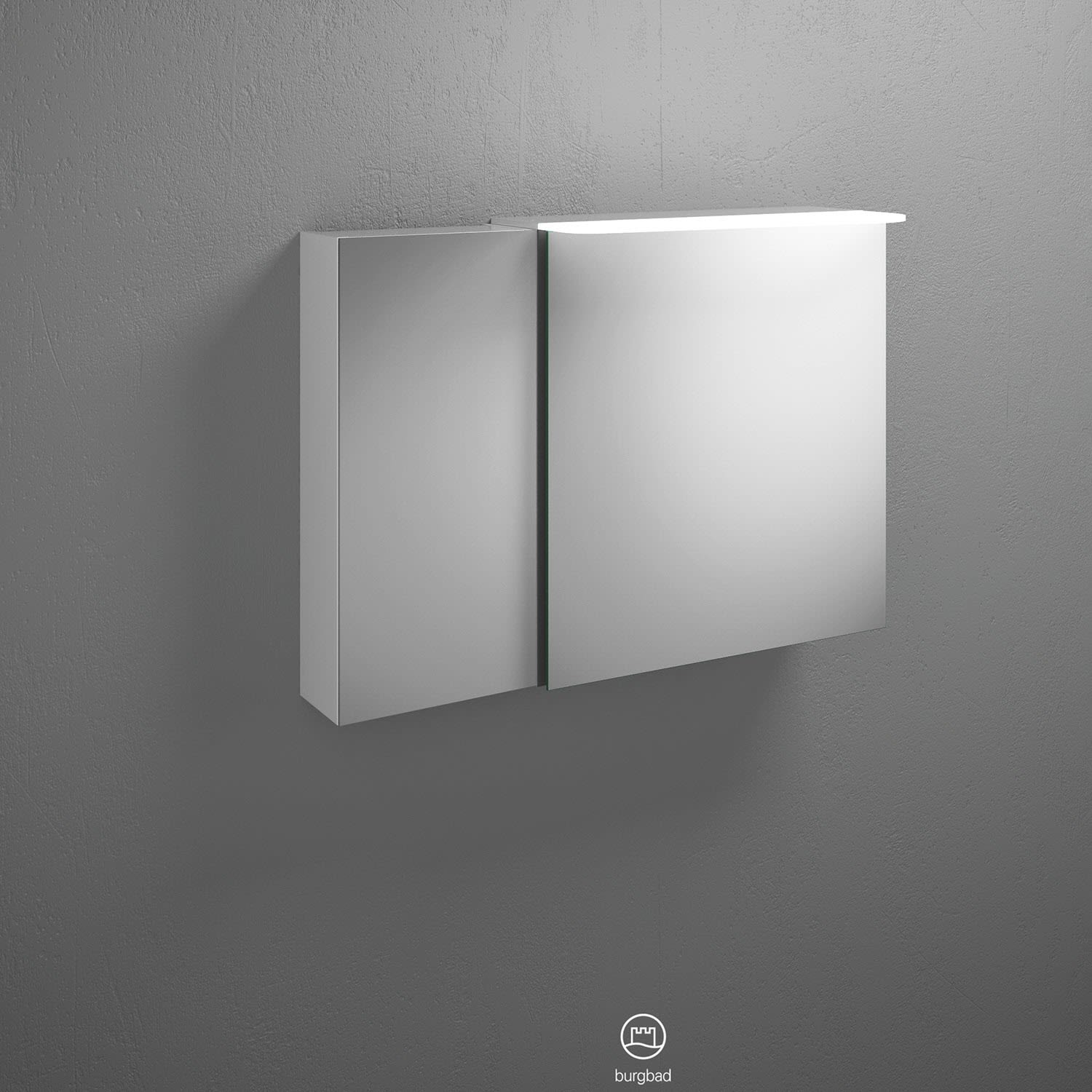 burgbad Badu Spiegelschrank mit LED-Aufsatzleuchte 90 cm, 2 Spiegeltüren, Version links
