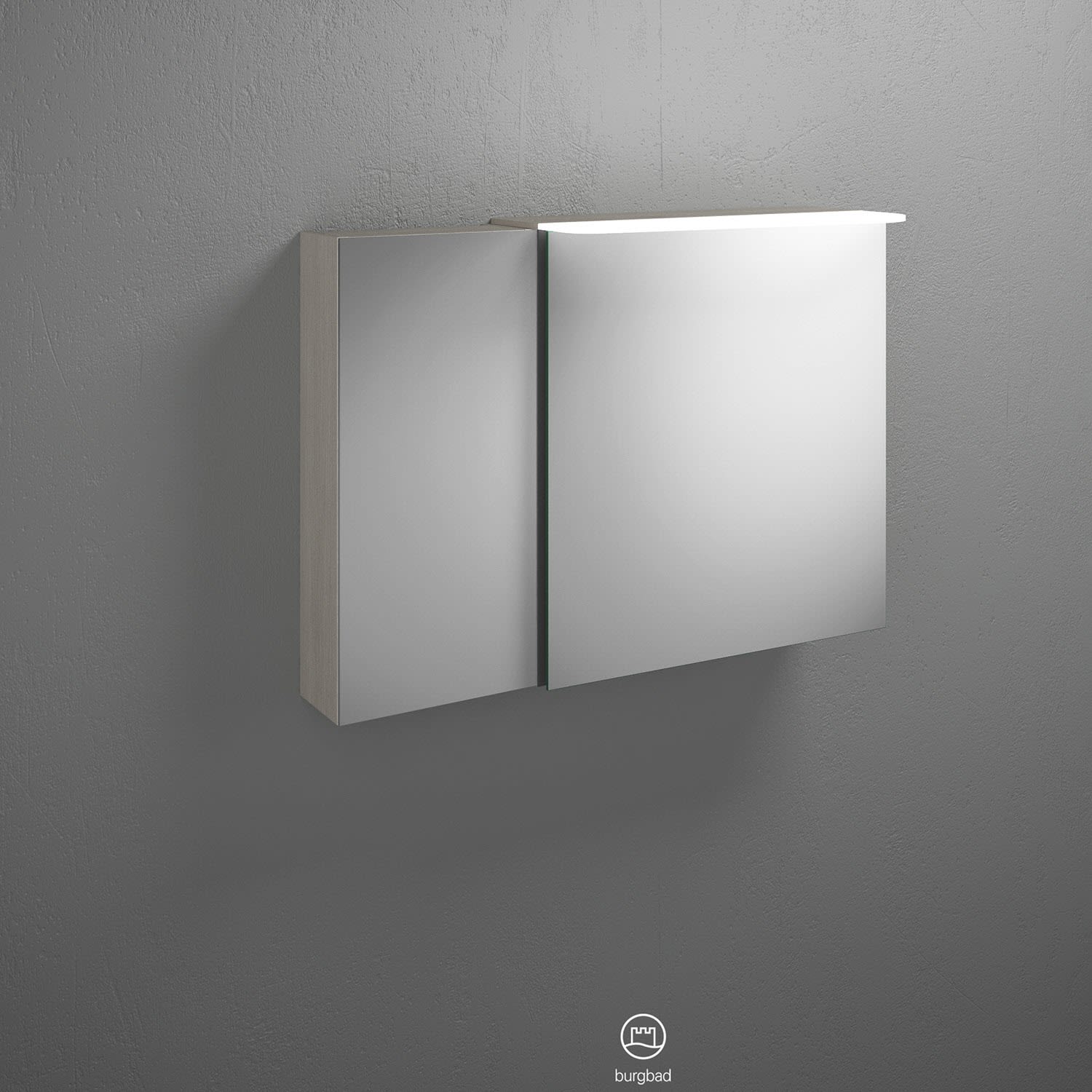 burgbad Badu Spiegelschrank mit LED-Aufsatzleuchte 90 cm, 2 Spiegeltüren, Version rechts