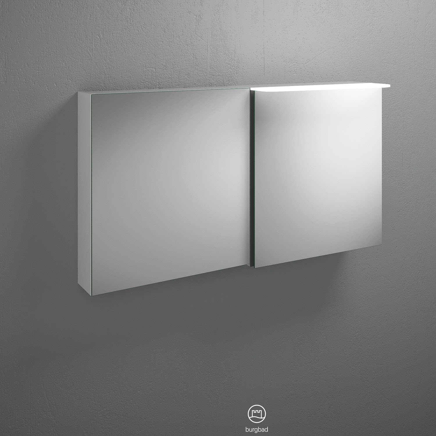 burgbad Badu Spiegelschrank mit LED-Aufsatzleuchte 120 cm, 2 Spiegeltüren, Version rechts