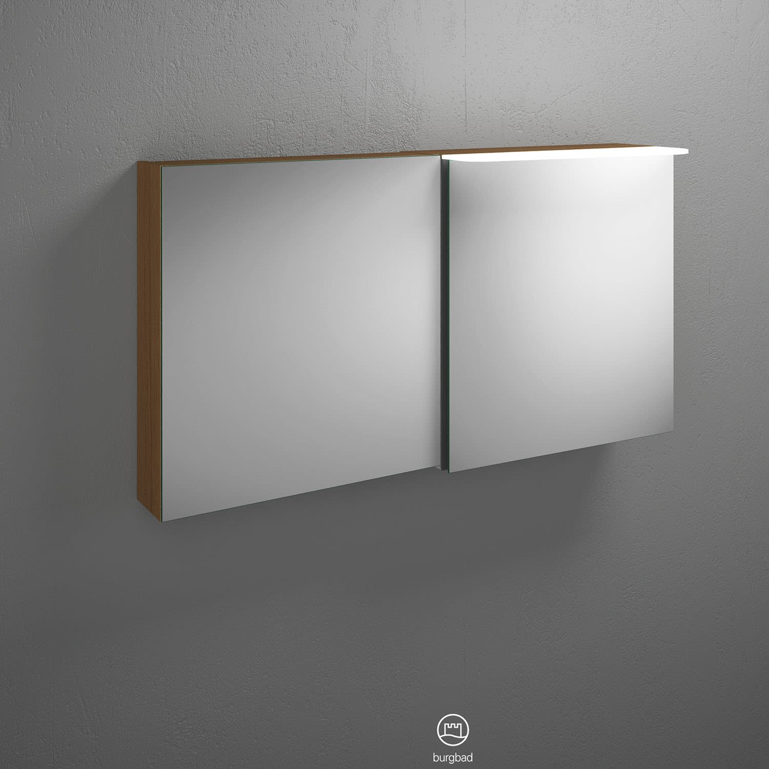 burgbad Badu Spiegelschrank mit LED-Aufsatzleuchte 120 cm, 2 Spiegeltüren, Version rechts