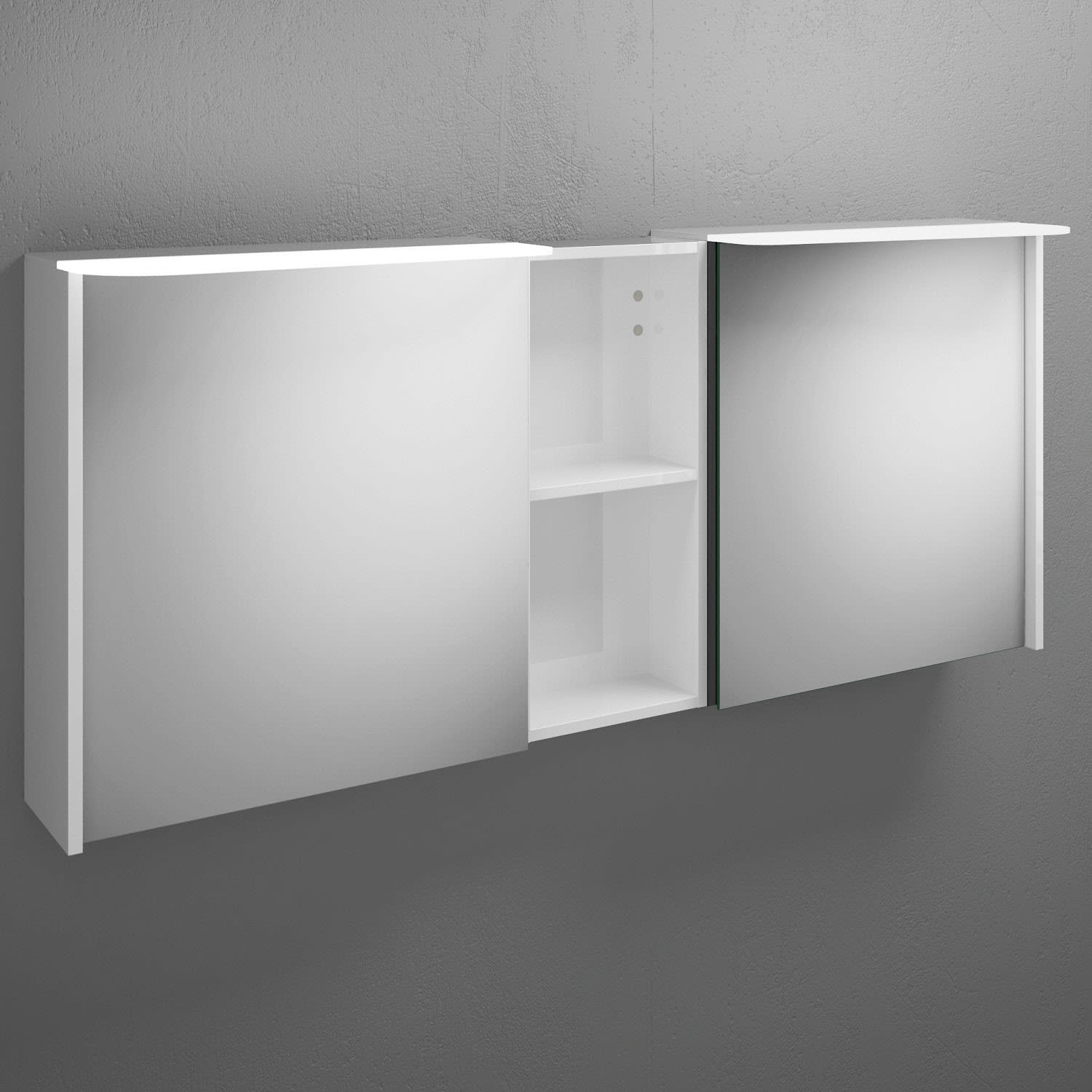 burgbad Badu Spiegelschrank mit LED-Aufsatzleuchte 150 cm, 2 Spiegeltüren, 1 Regal mittig