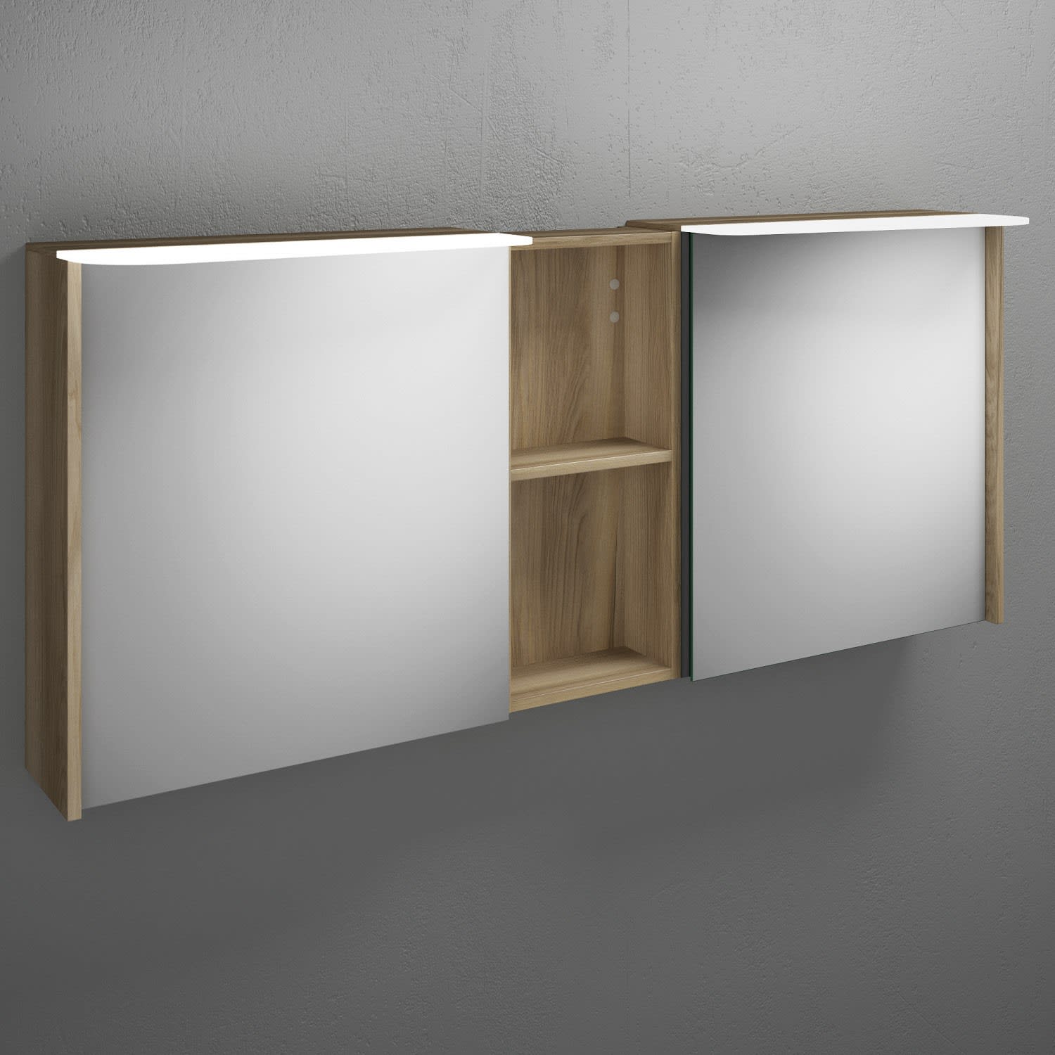 burgbad Badu Spiegelschrank mit LED-Aufsatzleuchte 150 cm, 2 Spiegeltüren, 1 Regal mittig