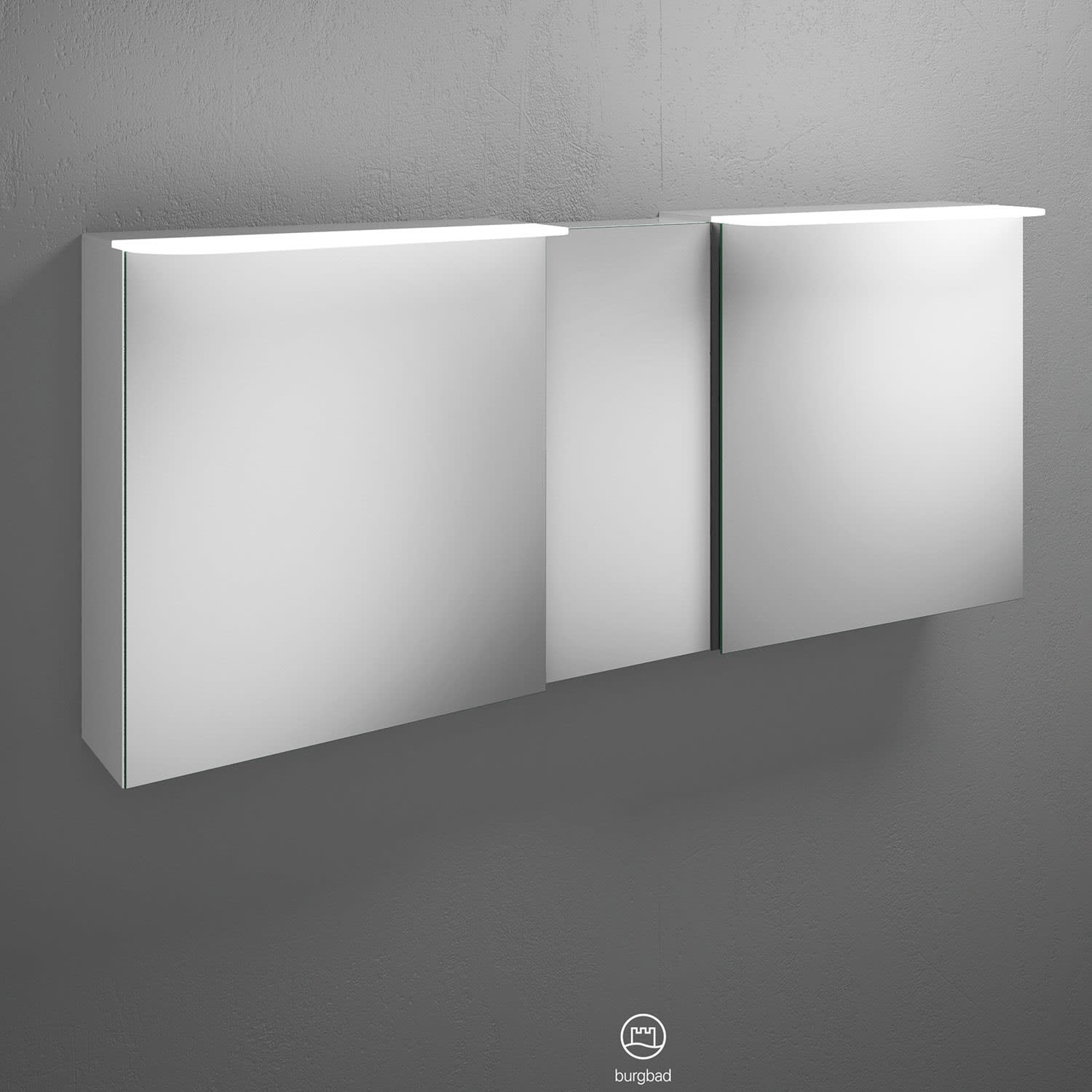 burgbad Badu Spiegelschrank mit LED-Aufsatzleuchte 150 cm, 3 Spiegeltüren, Version links