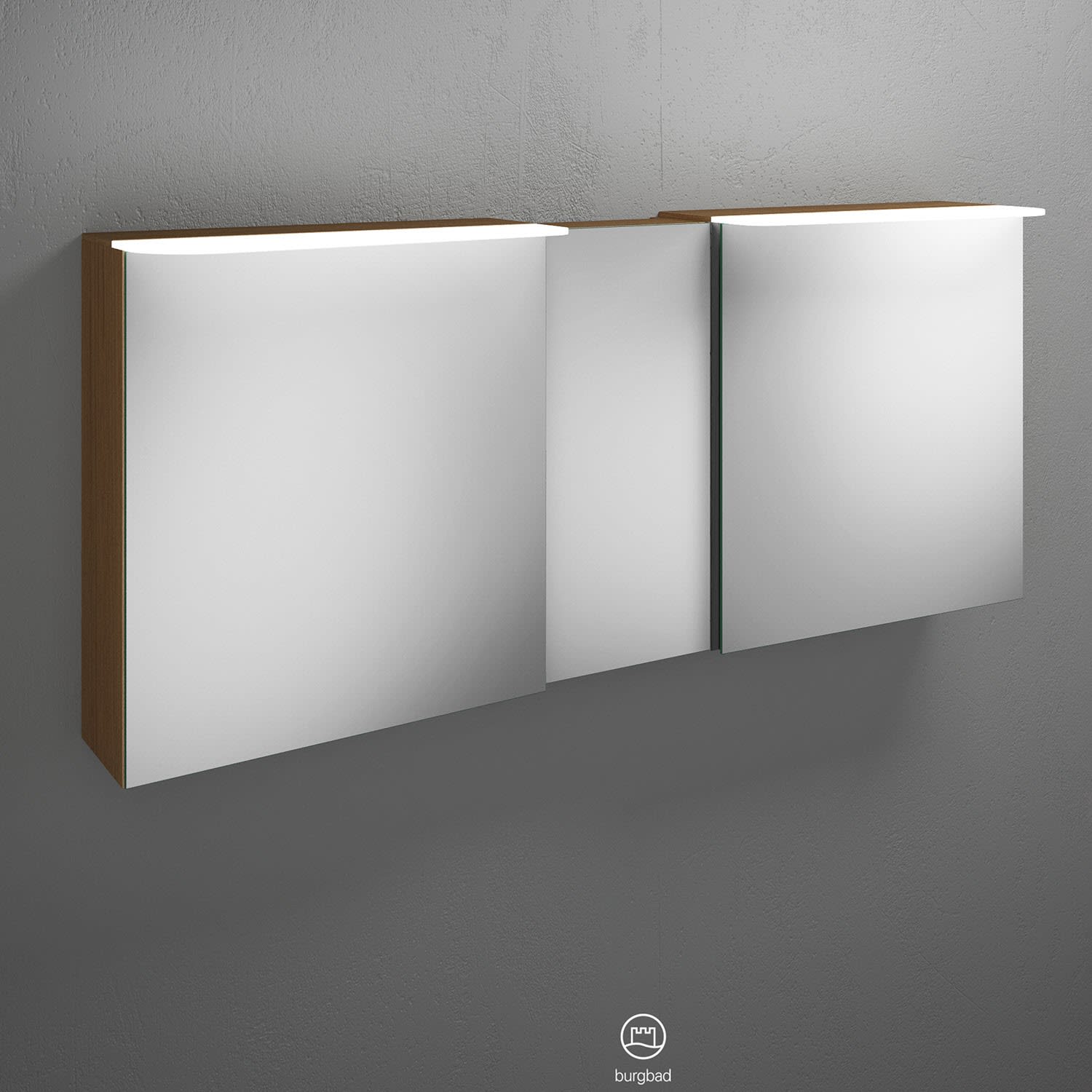 burgbad Badu Spiegelschrank mit LED-Aufsatzleuchte 150 cm, 3 Spiegeltüren, Version rechts