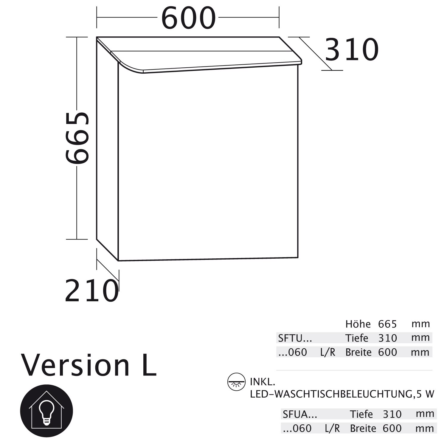burgbad Badu Spiegelschrank mit LED-Aufsatzleuchte 60 cm, 1 Spiegeltür inkl. LED-Waschtischbeleuchtung, Version links