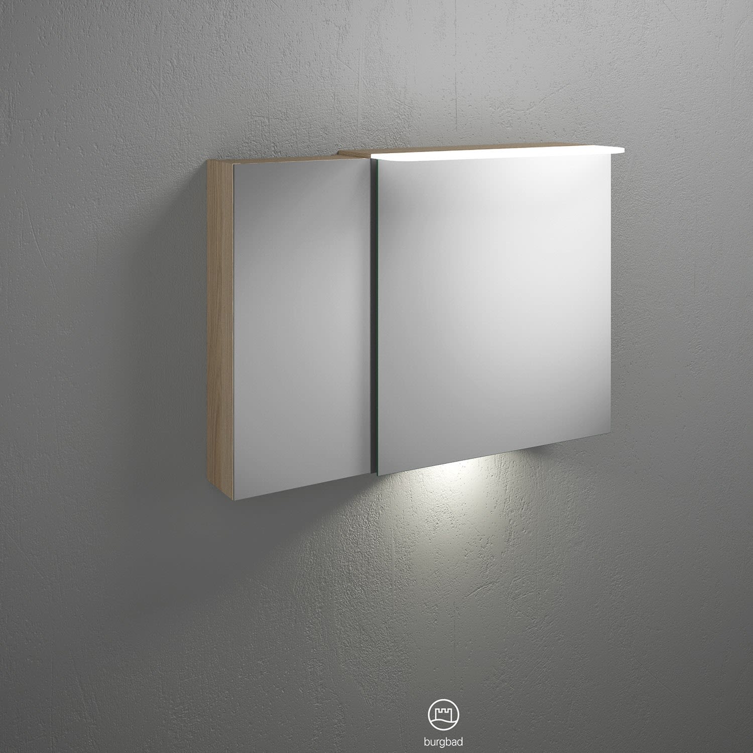 burgbad Badu Spiegelschrank mit LED-Aufsatzleuchte 90 cm, 2 Spiegeltüren inkl. LED-Waschtischbeleuchtung, Version links