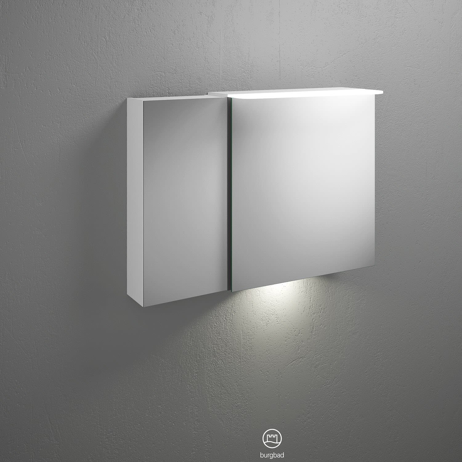 burgbad Badu Spiegelschrank mit LED-Aufsatzleuchte 90 cm, 2 Spiegeltüren inkl. LED-Waschtischbeleuchtung, Version links