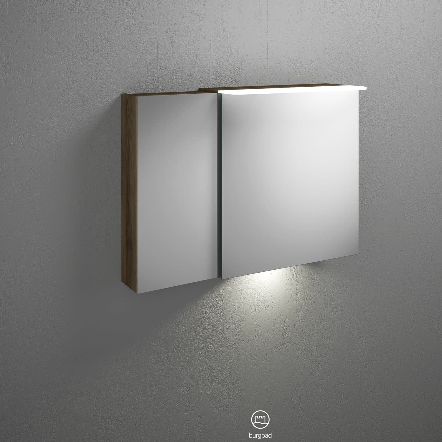 burgbad Badu Spiegelschrank mit LED-Aufsatzleuchte 90 cm, 2 Spiegeltüren inkl. LED-Waschtischbeleuchtung, Version links