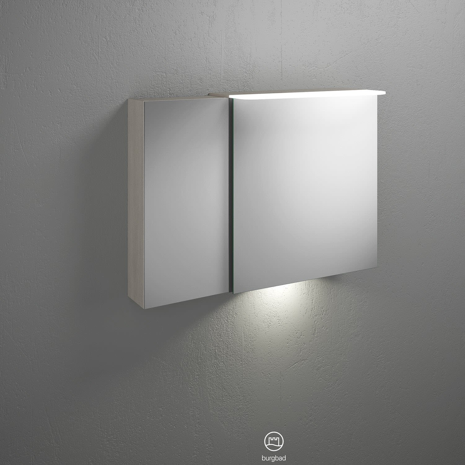 burgbad Badu Spiegelschrank mit LED-Aufsatzleuchte 90 cm, 2 Spiegeltüren inkl. LED-Waschtischbeleuchtung, Version rechts