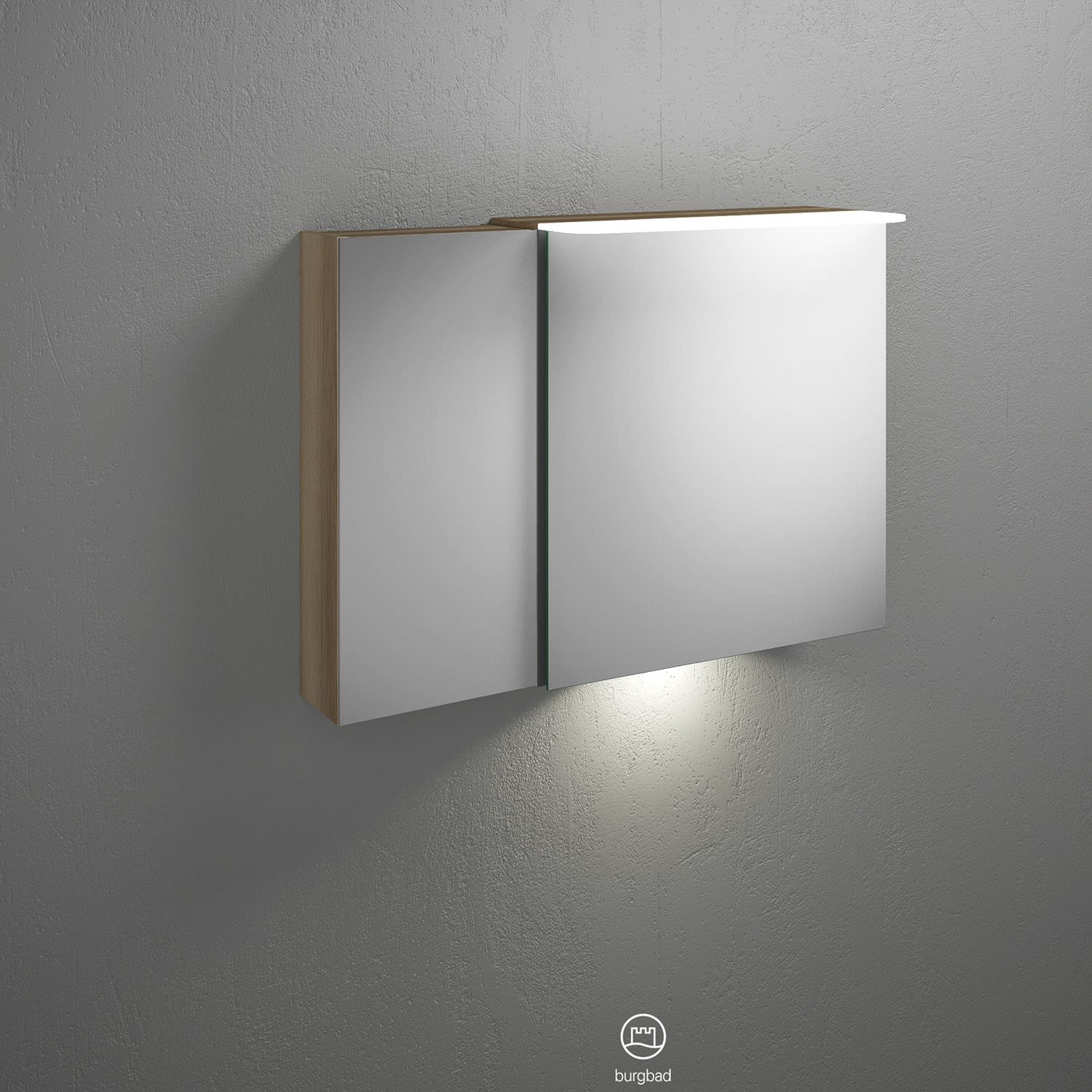 burgbad Badu Spiegelschrank mit LED-Aufsatzleuchte 90 cm, 2 Spiegeltüren inkl. LED-Waschtischbeleuchtung, Version rechts