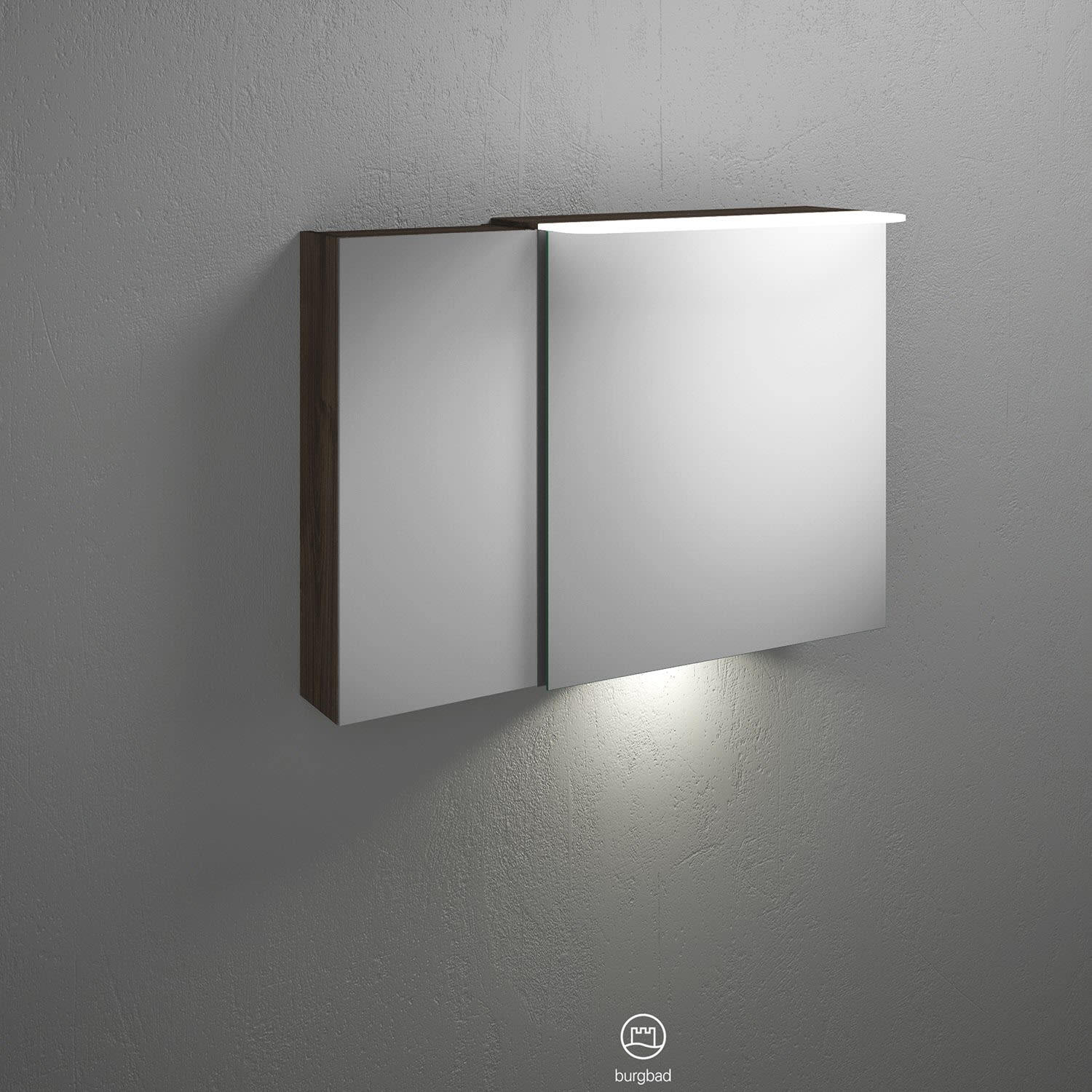 burgbad Badu Spiegelschrank mit LED-Aufsatzleuchte 90 cm, 2 Spiegeltüren inkl. LED-Waschtischbeleuchtung, Version rechts