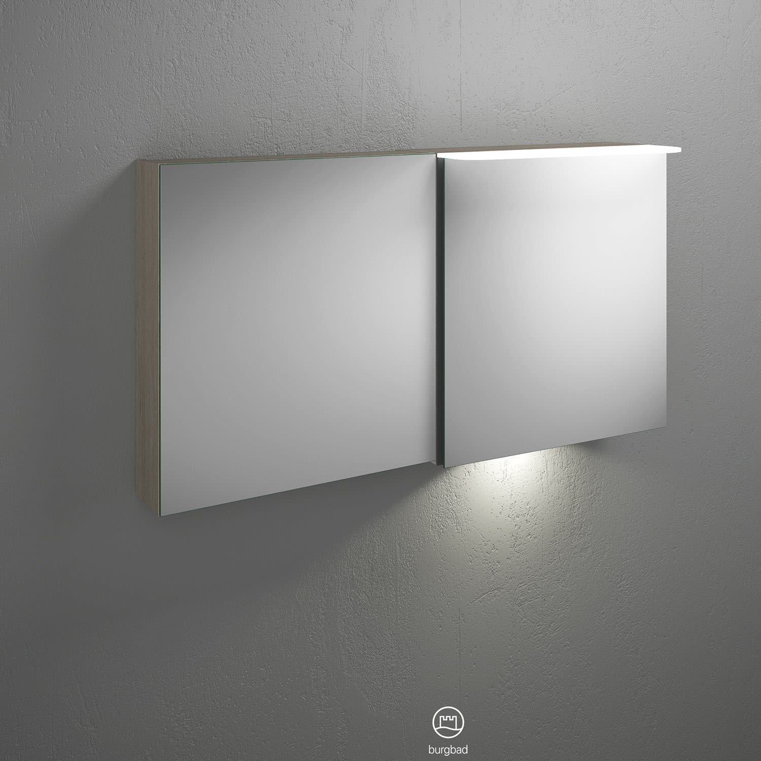 burgbad Badu Spiegelschrank mit LED-Aufsatzleuchte 120 cm, 2 Spiegeltüren inkl. LED-Waschtischbeleutung, Version links