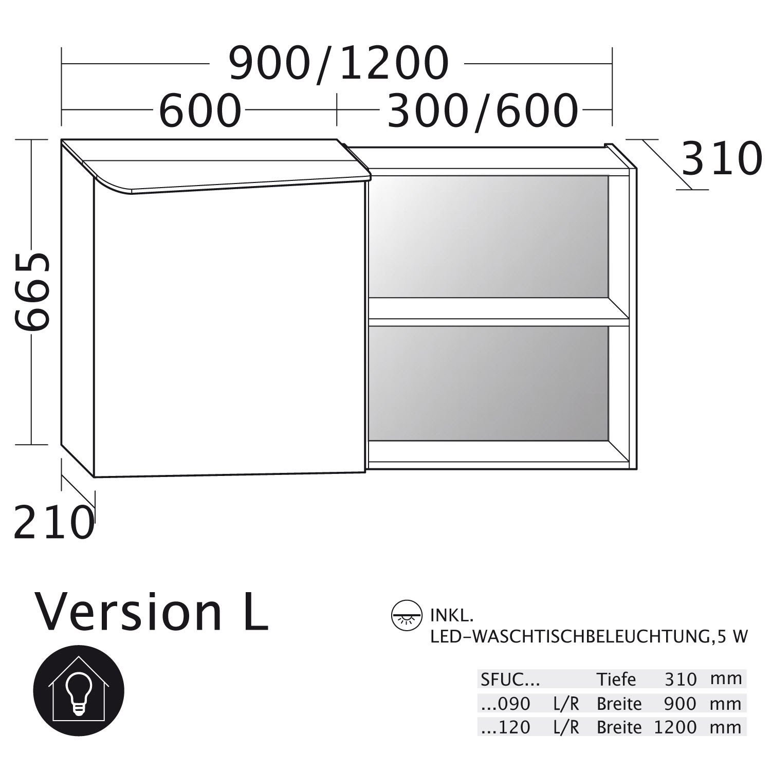 burgbad Badu Spiegelschrank mit LED-Aufsatzleuchte 120 cm, 1 Spiegeltür links, 1 Regal rechts inkl. LED-Waschtischbeleuchtung
