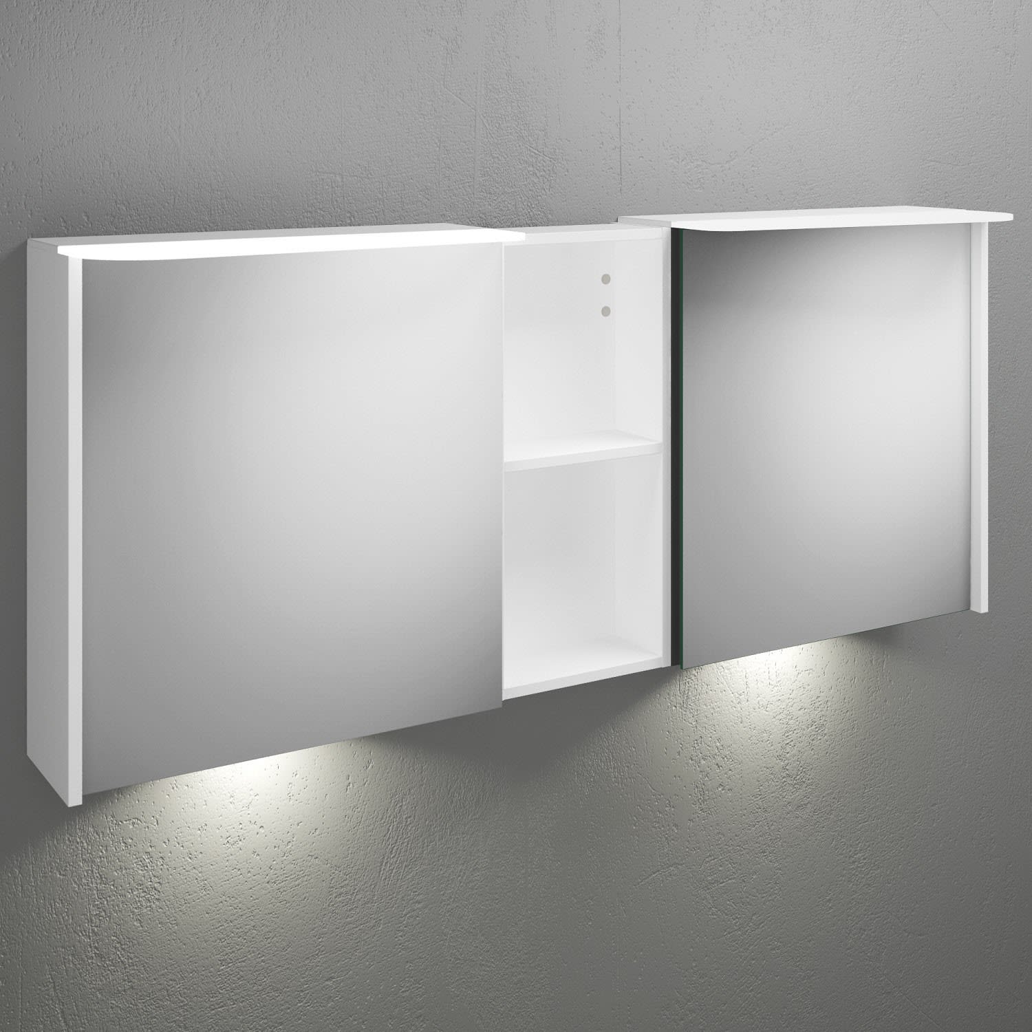 burgbad Badu Spiegelschrank mit LED-Aufsatzleuchte 150 cm, 2 Spiegeltüren, 1 Regal mittig inkl. LED-Waschtischbeleuchtung