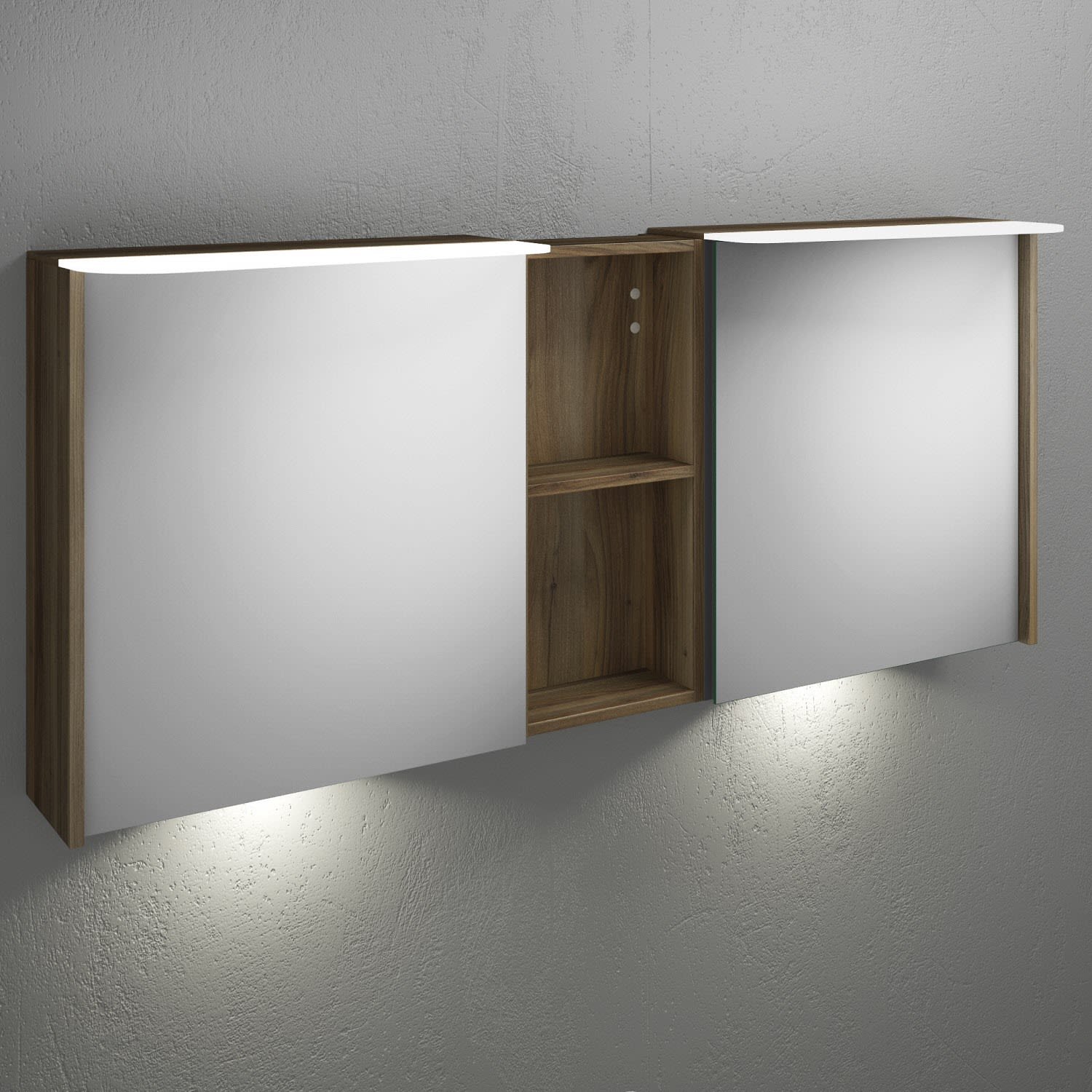 burgbad Badu Spiegelschrank mit LED-Aufsatzleuchte 150 cm, 2 Spiegeltüren, 1 Regal mittig inkl. LED-Waschtischbeleuchtung