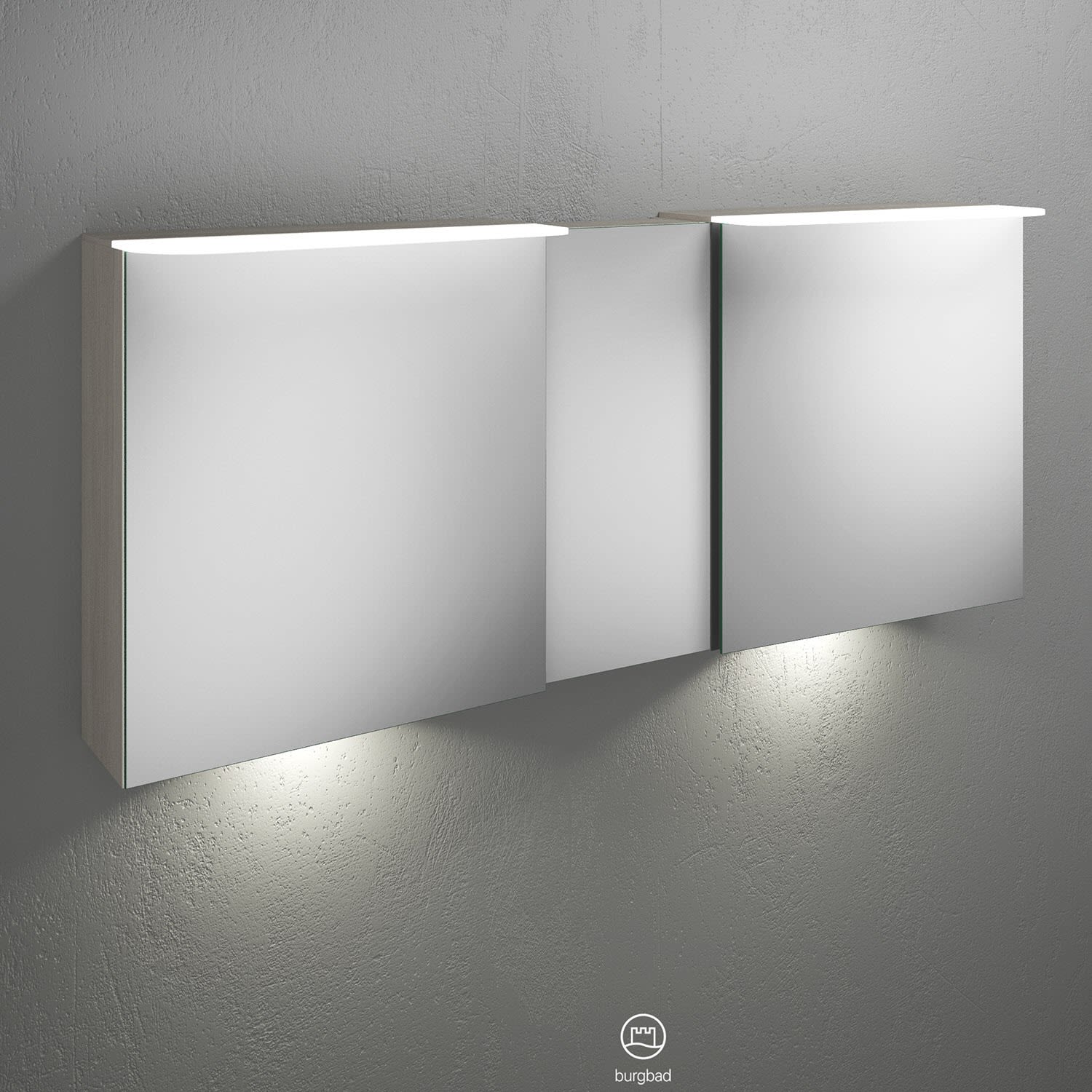 burgbad Badu Spiegelschrank mit LED-Aufsatzleuchte 150 cm, 3 Spiegeltüren inkl. LED-Waschtischbeleuchtung, Version rechts