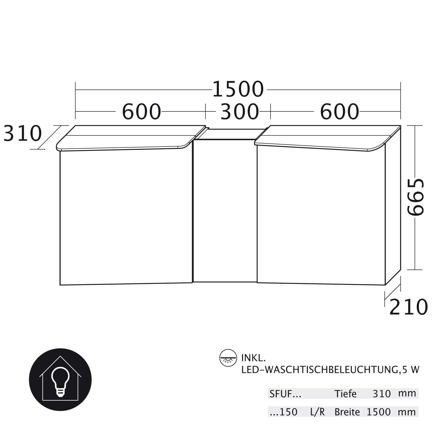 burgbad Badu Spiegelschrank mit LED-Aufsatzleuchte 150 cm, 3 Spiegeltüren inkl. LED-Waschtischbeleuchtung, Version rechts