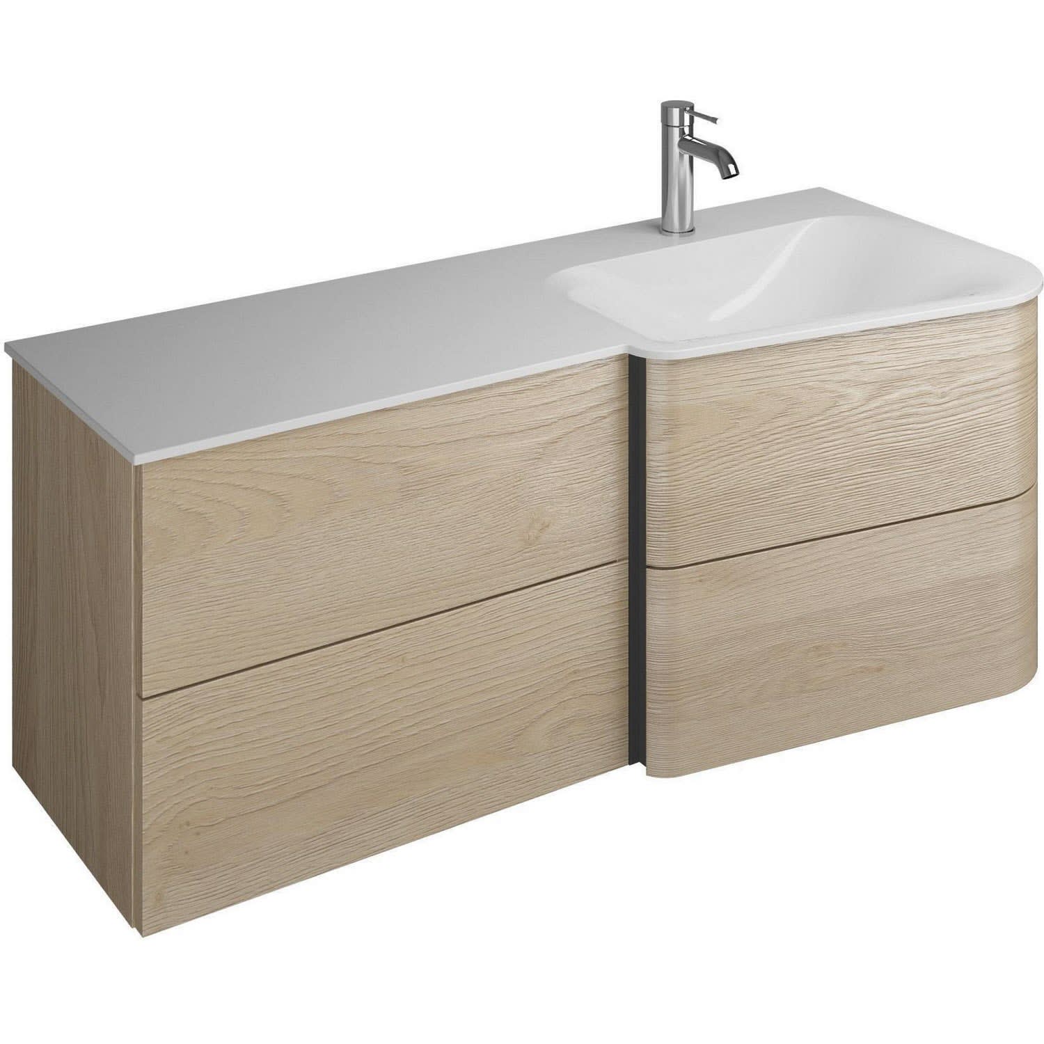 burgbad Badu Mineralguss-Waschtisch inkl. Waschtischunterschrank 122 cm, 2 Schubladen seitlich, Becken rechts