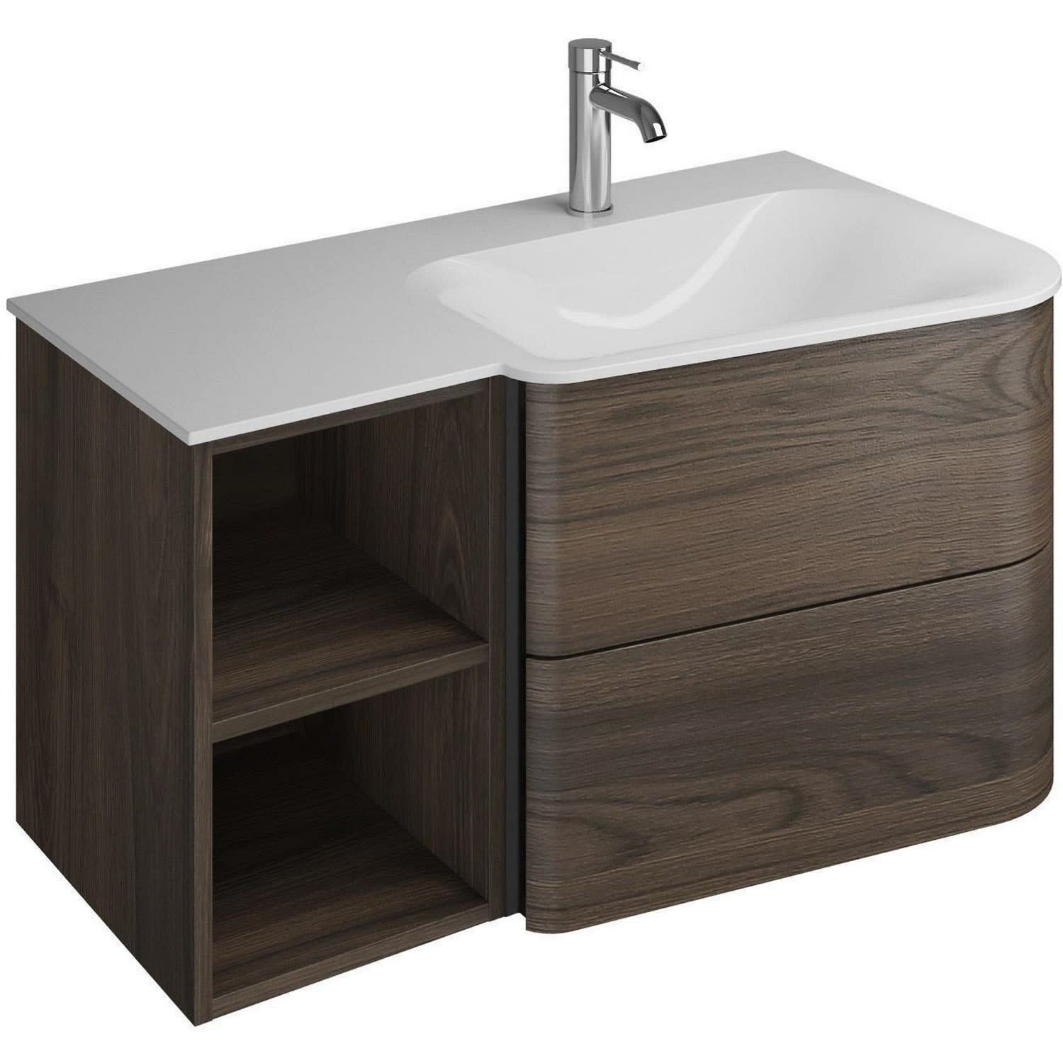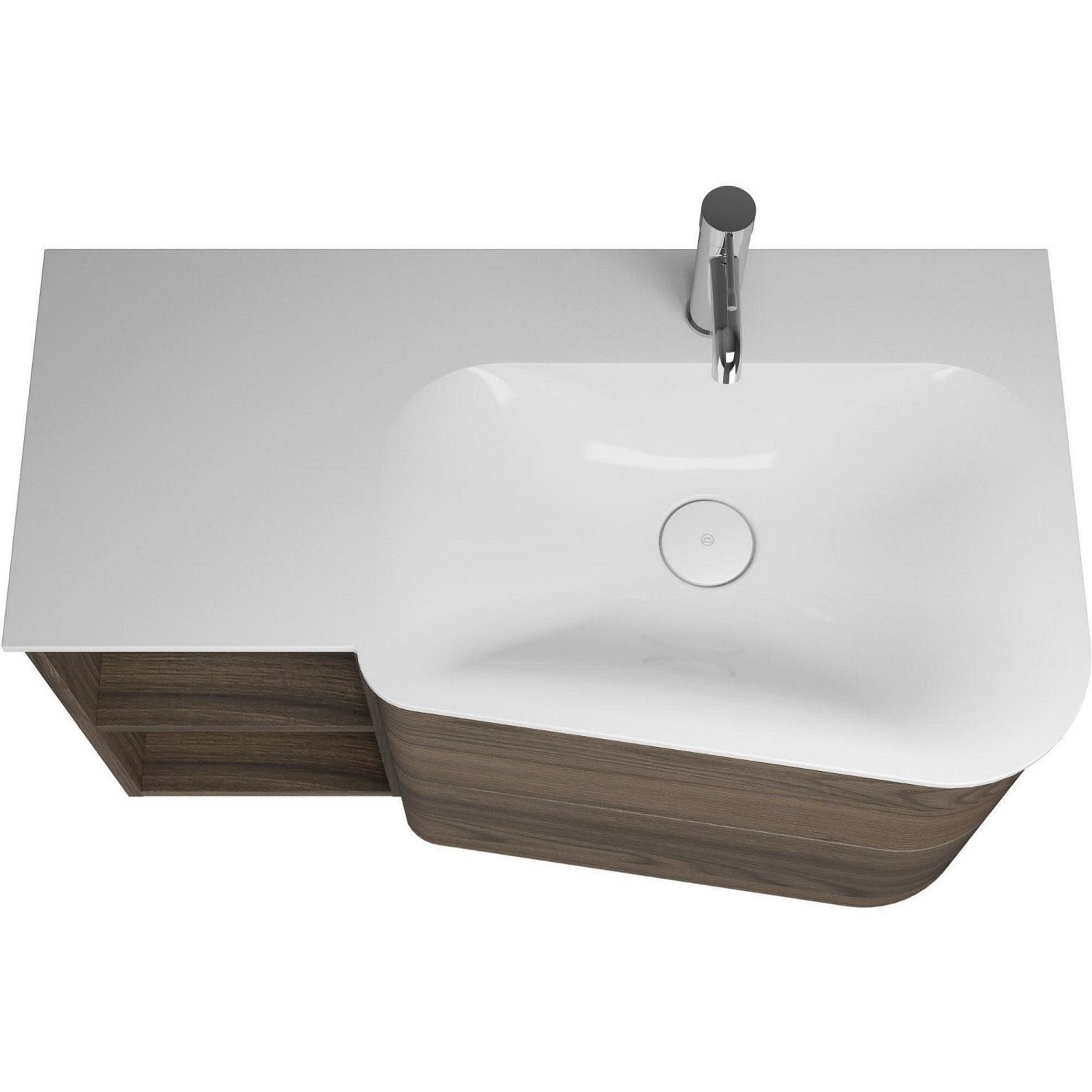 burgbad Badu Mineralguss-Waschtisch inkl. Waschtischunterschrank 92 cm, 1 Regal links, Becken rechts