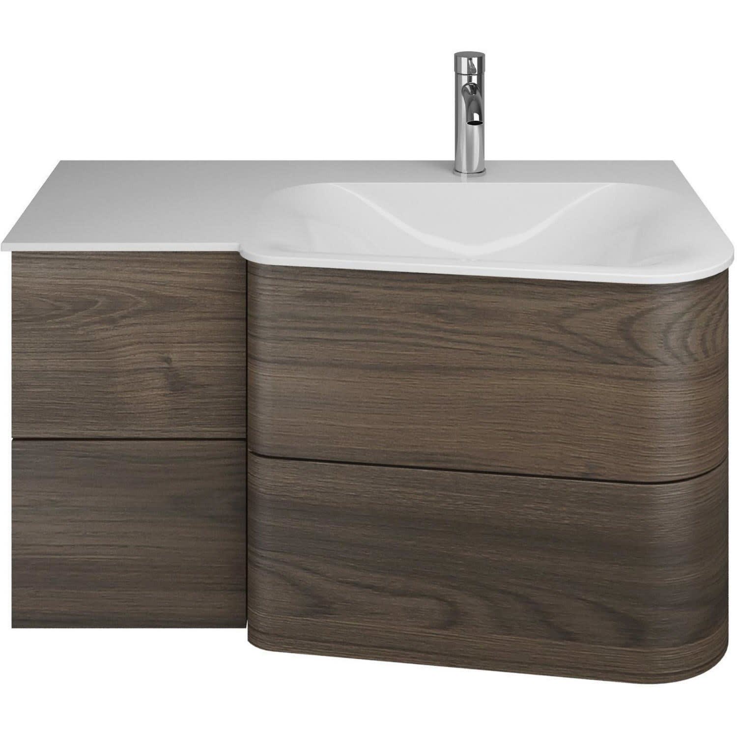 burgbad Badu Mineralguss-Waschtisch inkl. Waschtischunterschrank 92 cm, 2 Schubladen seitlich, Becken rechts