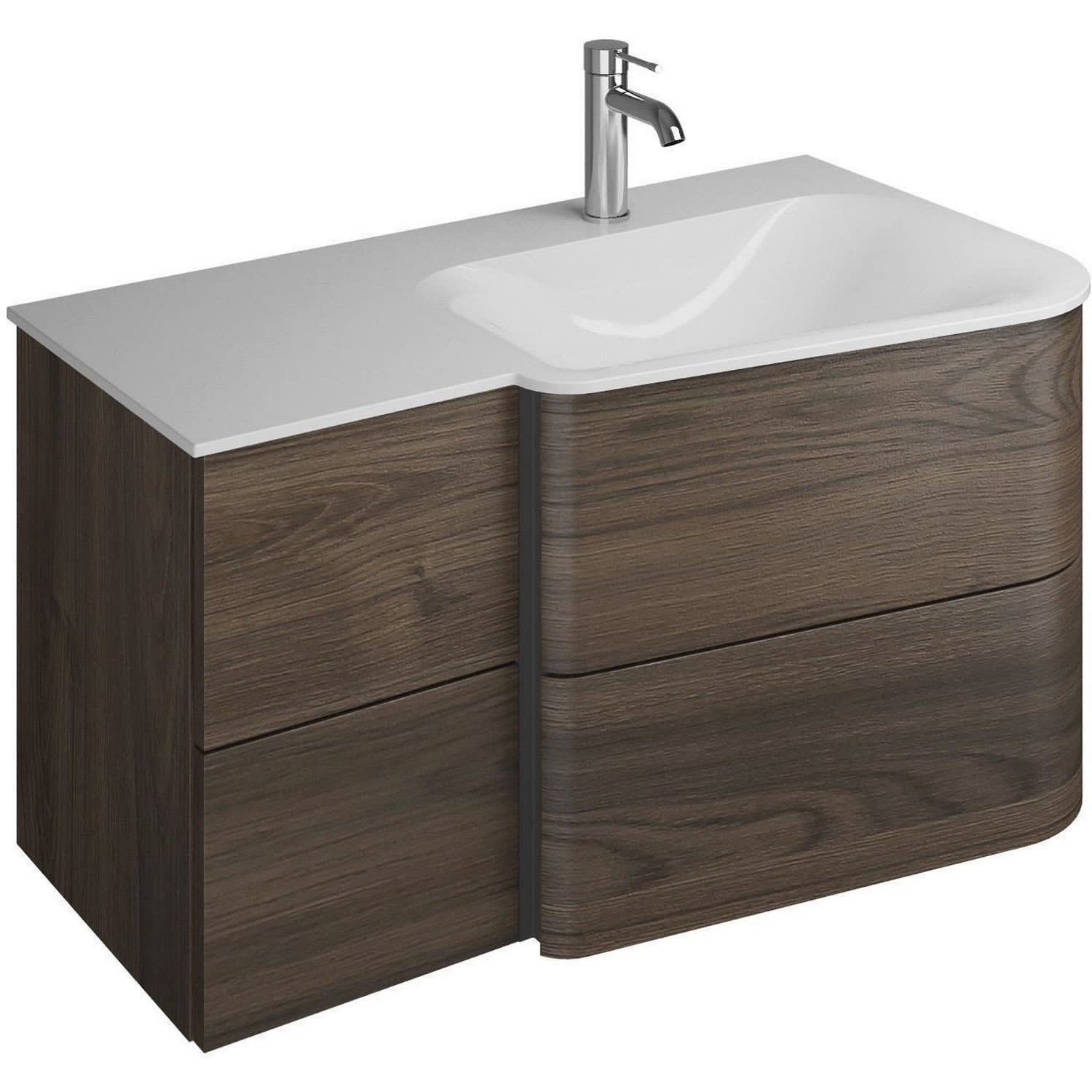 Becken rechts, 2 Schubladen links