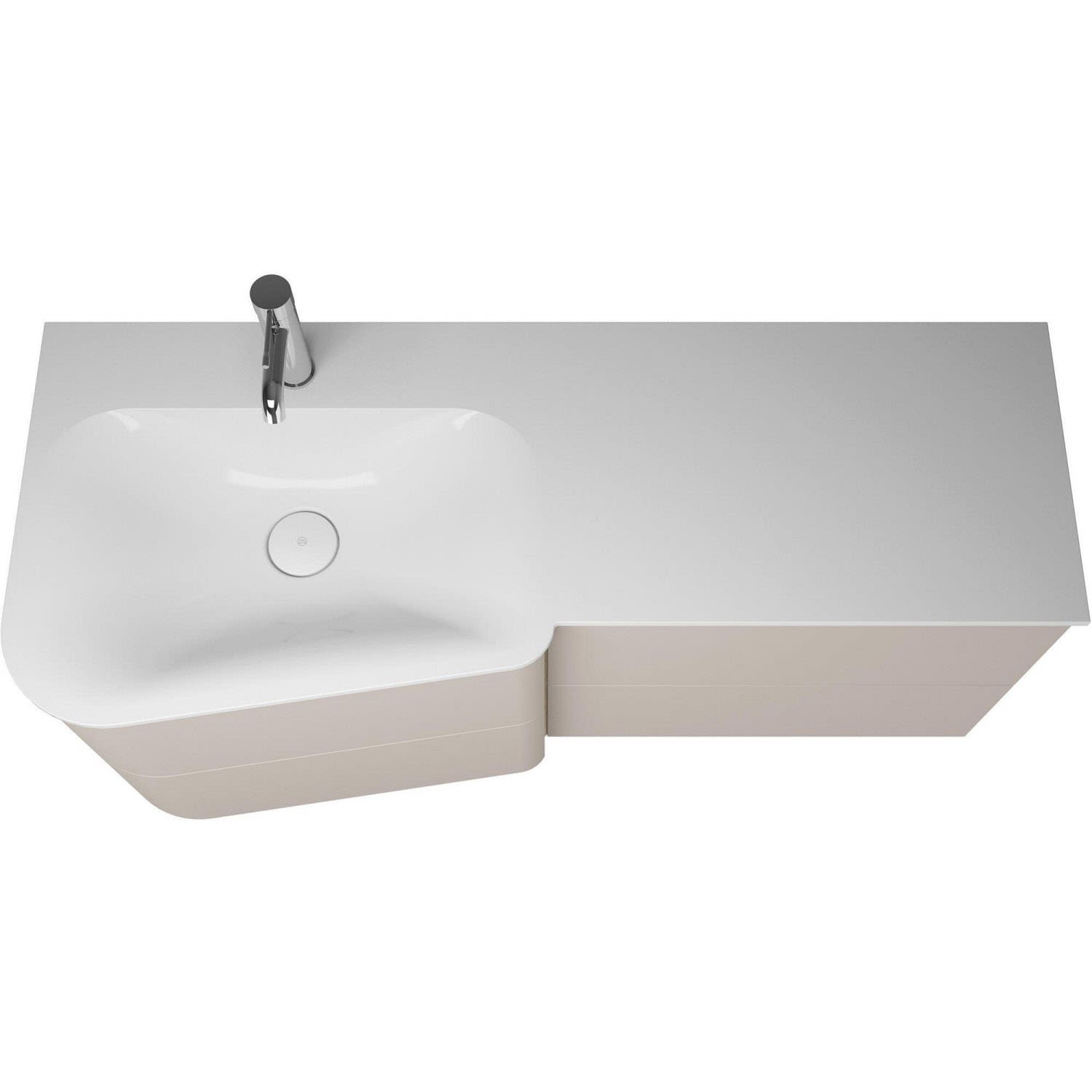 burgbad Badu Mineralguss-Waschtisch inkl. Waschtischunterschrank 122 cm, 2 Schubladen seitlich, Becken links