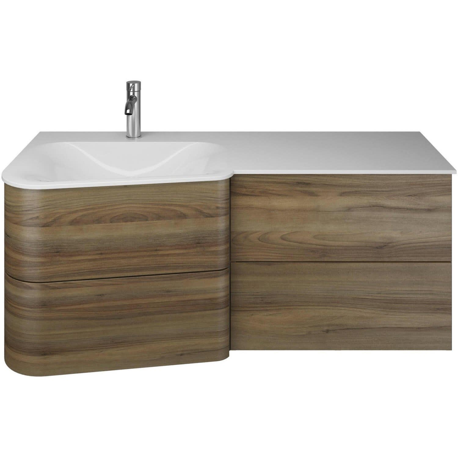 burgbad Badu Mineralguss-Waschtisch inkl. Waschtischunterschrank 122 cm, 2 Schubladen seitlich, Becken links