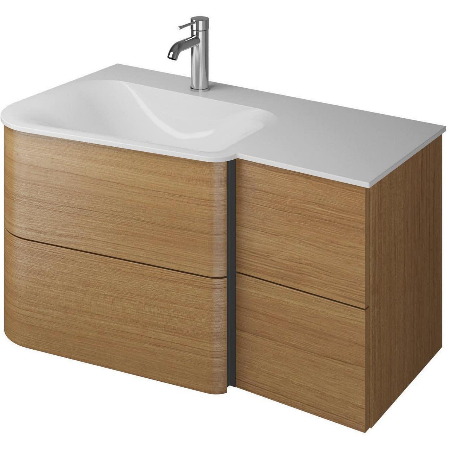 Becken links, 2 Schubladen rechts