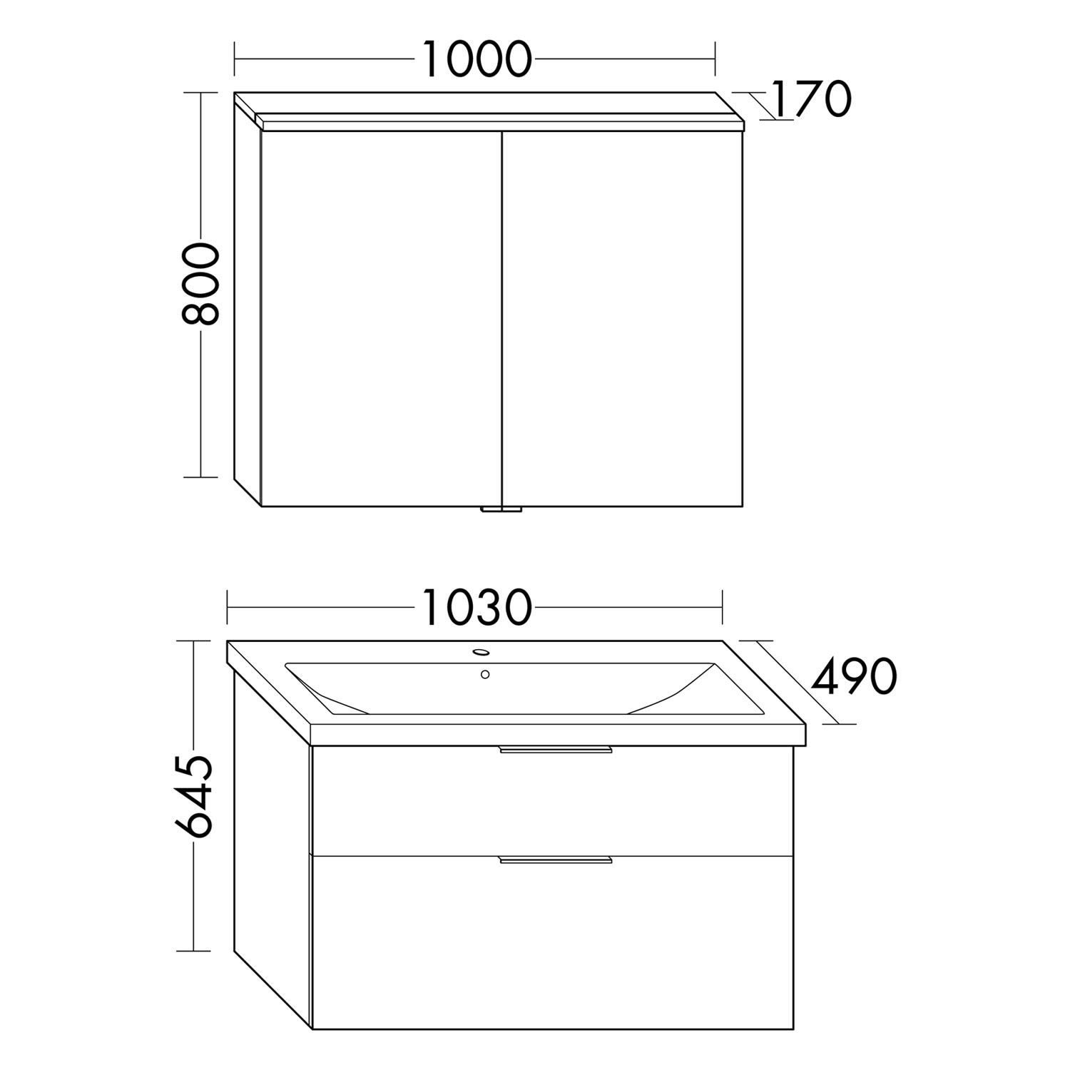 - 1 Schublade oben mit Siphonausschnitt und Inneneinteilung