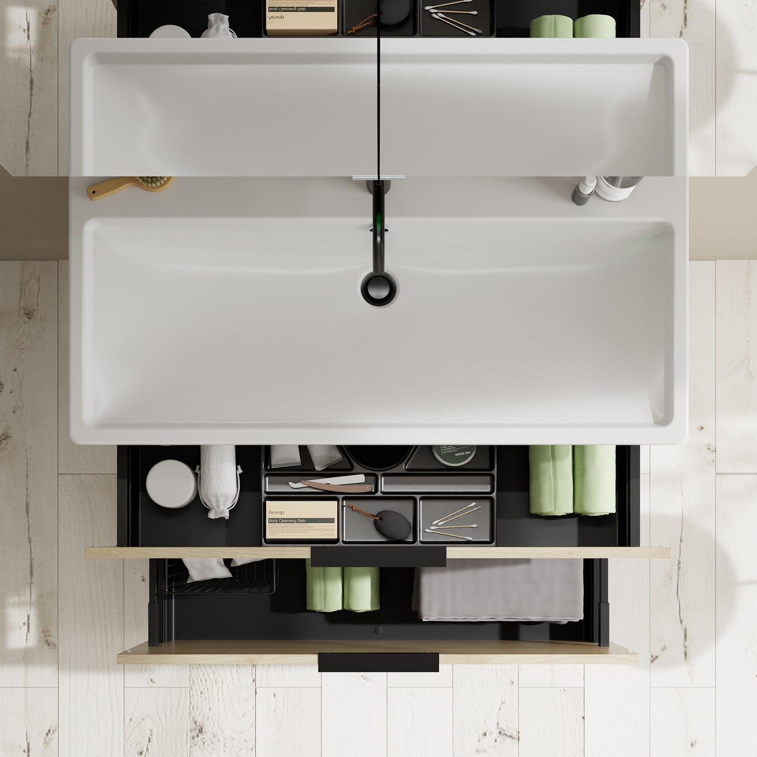 - 1 Schublade oben mit Siphonausschnitt und Inneneinteilung