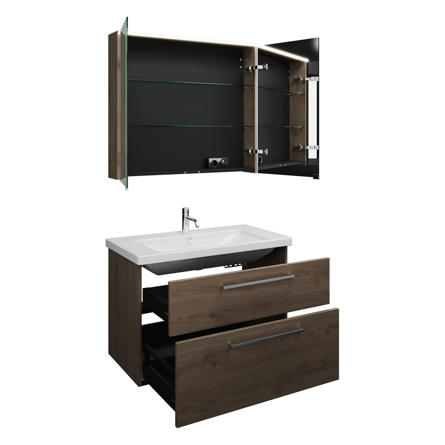 - 1 Schublade oben mit Siphonausschnitt und Inneneinteilung