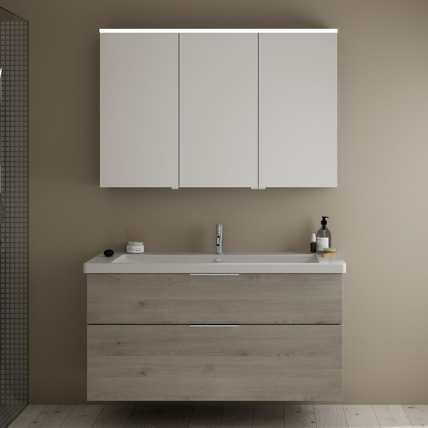burgbad Eqio Möbelkombination inkl. Keramik-Waschtisch 123 cm, Doppeltür Spiegelschrank rechts, mit Griff G0146