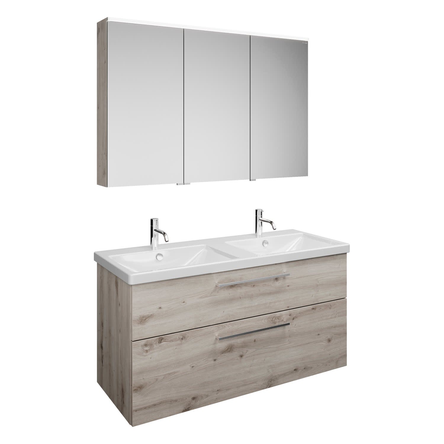 burgbad Eqio Möbelkombination inkl. Keramik-Doppelwaschtisch 123 cm, Doppeltür Spiegelschrank links, mit Stangengriff P95