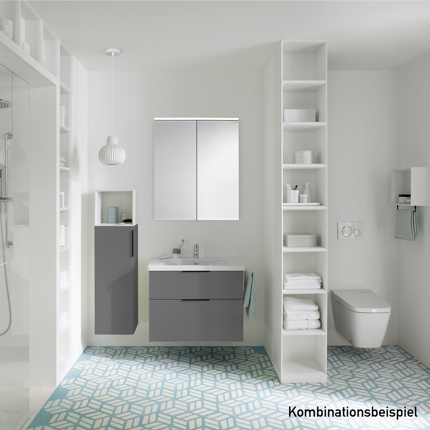 burgbad Eqio Waschtischkombination mit Glaswaschtisch 82 cm, mit Stangengriff P95