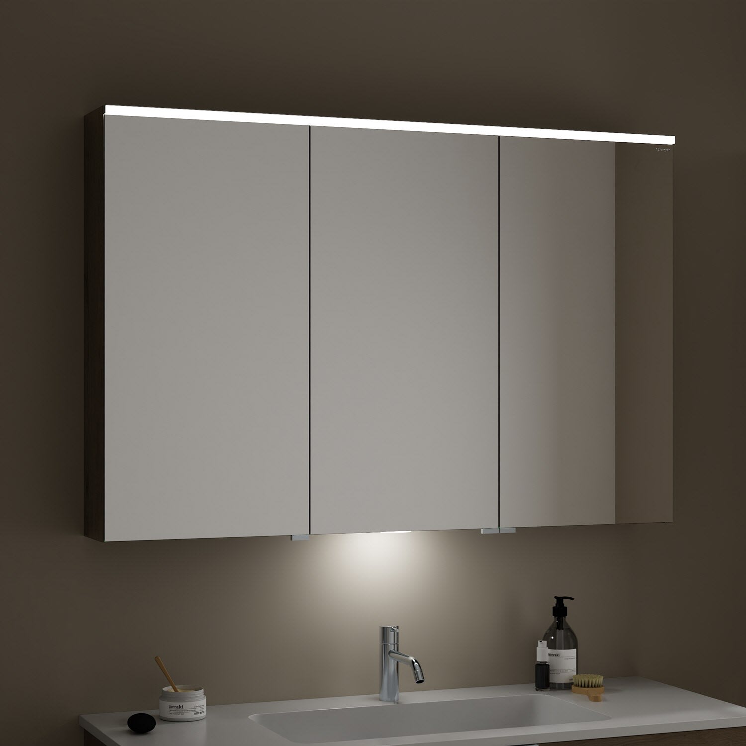 burgbad Eqio Spiegelschrank mit LED-Aufsatzleuchte und LED-Waschtischbeleuchtung 120 cm Rechts
