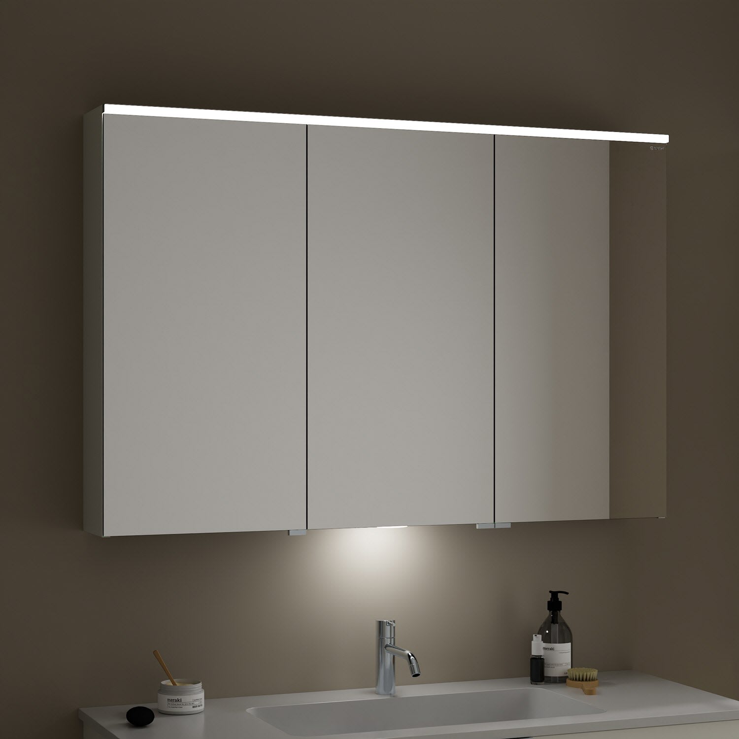 burgbad Eqio Spiegelschrank mit LED-Aufsatzleuchte und LED-Waschtischbeleuchtung 120 cm Rechts