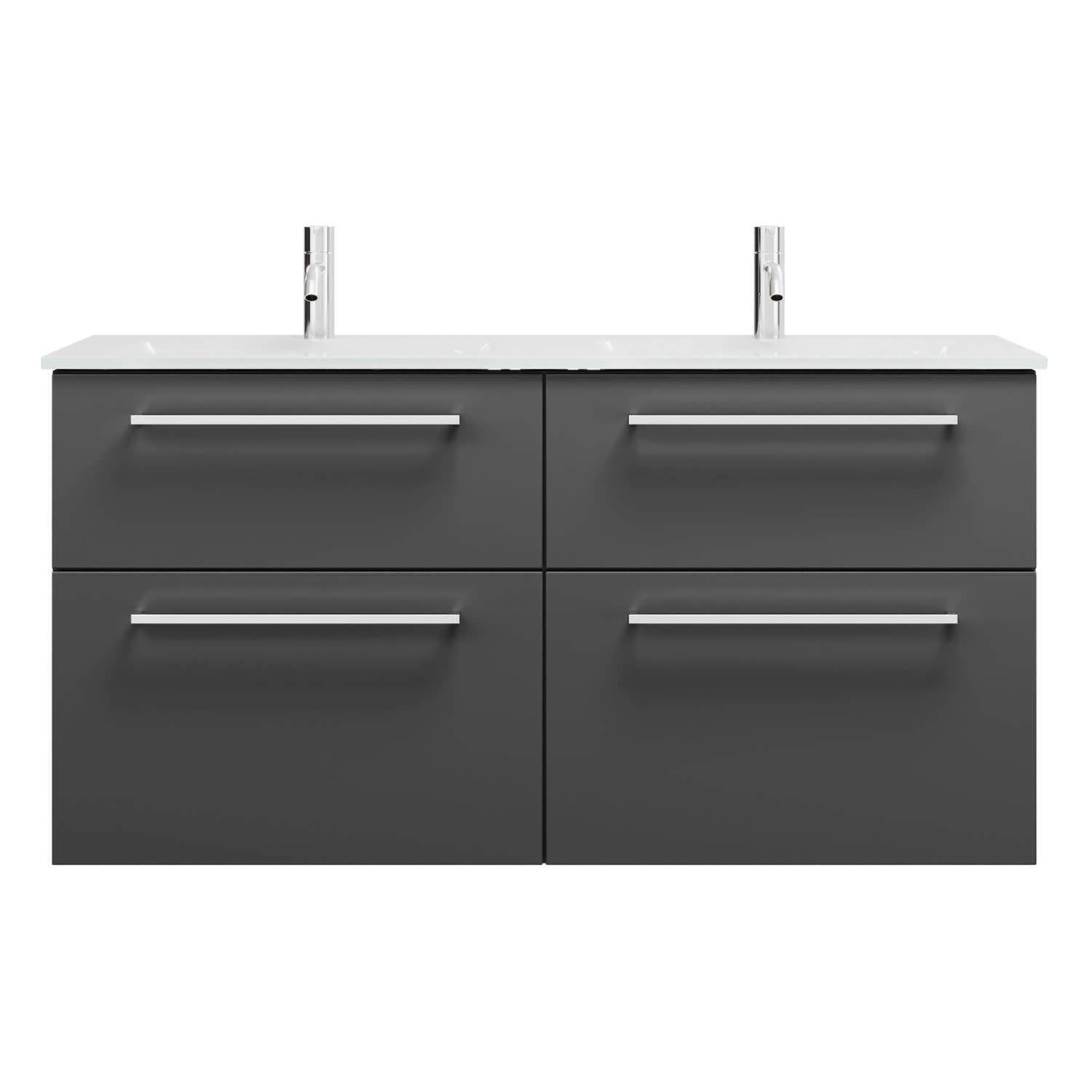 burgbad Eqio Waschtischkombination mit Glas- Doppelwaschtisch 122 cm, mit Stangengriff P95