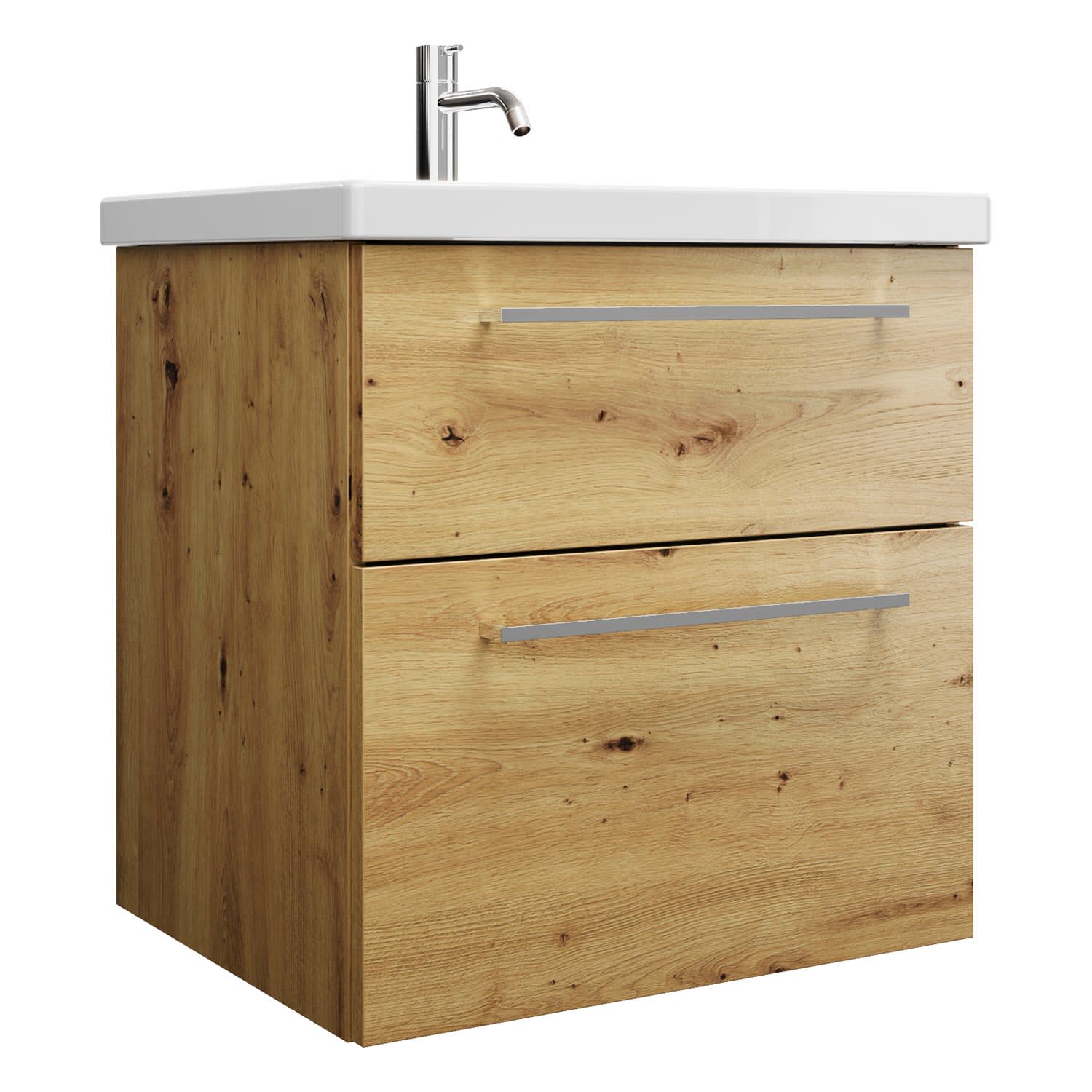 burgbad Eqio Waschtischkombination mit Keramik-Waschtisch, 63 cm, mit Stangengriff P95