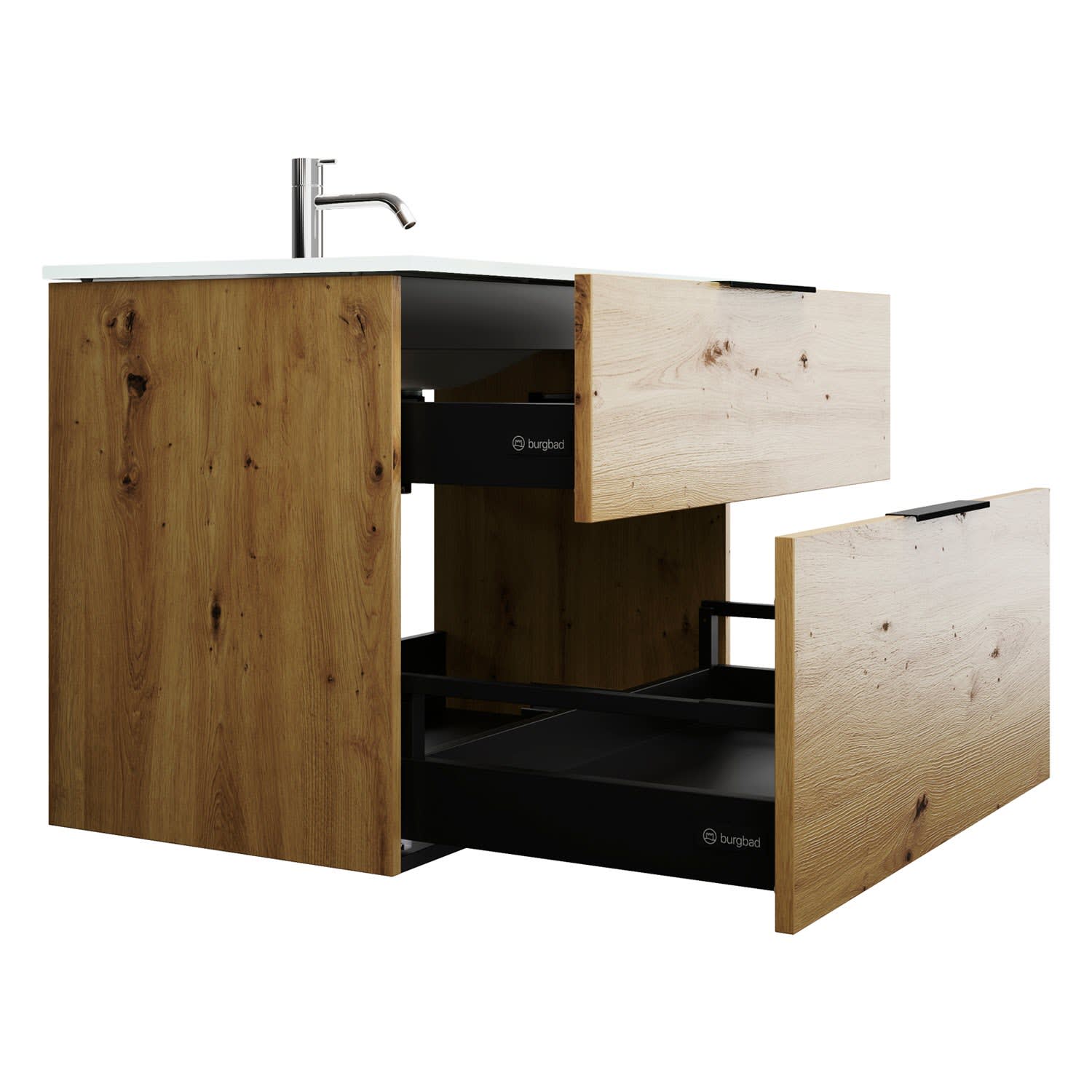 burgbad Eqio Waschtischkombination mit Glaswaschtisch 82 cm, mit Griff G0200