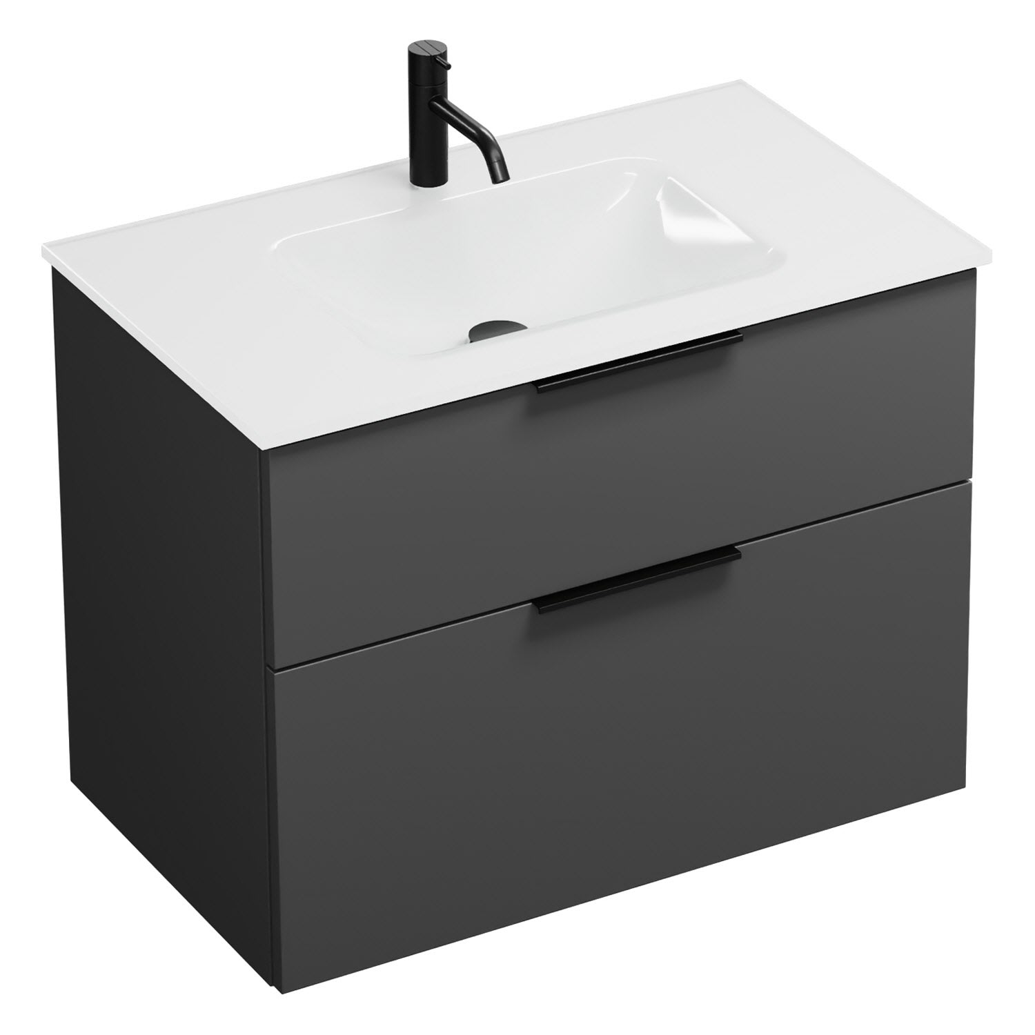 burgbad Eqio Waschtischkombination mit Glaswaschtisch 82 cm, mit Griff G0200