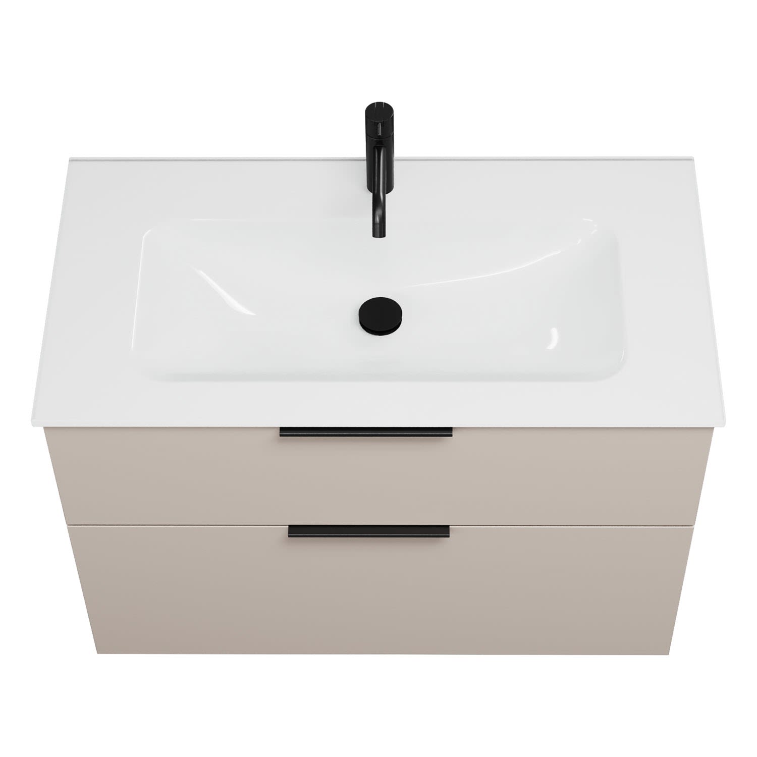 - 1 Schublade oben, 35 cm tief, mit Siphonausschnitt und Inneneinteilung