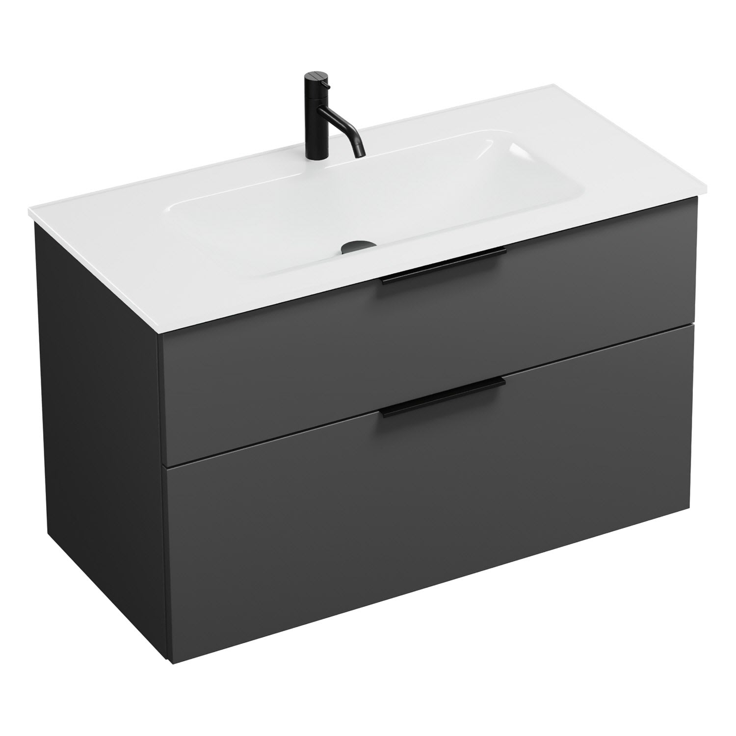 burgbad Eqio Waschtischkombination mit Glaswaschtisch 102 cm, mit Griff G0200